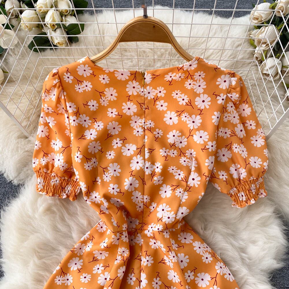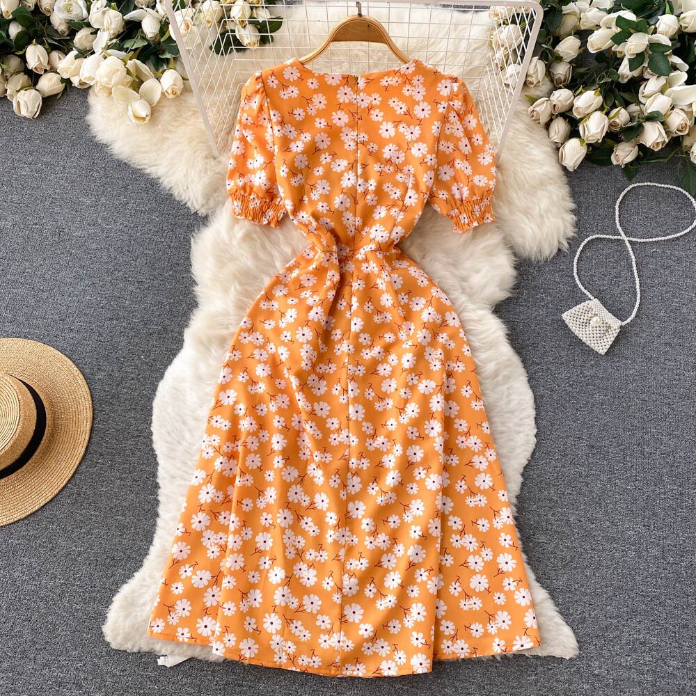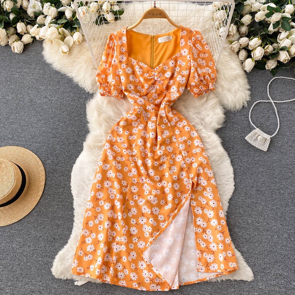 フランスの穏やかな風ウエスト スリムな気質スクエア ネック ドレス夏の女性の海辺の休暇半袖ミディ スカート サマー 夏物 スクウェア lyxaj32166335123