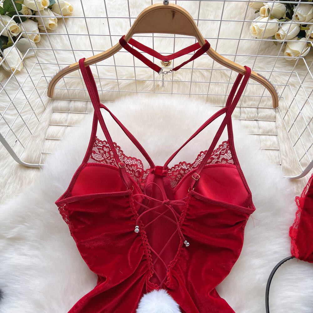 Light mature style lace edge sexy red temperament hanging neck sling jumpsuit women's summer waist thin underwear tide レッド レース サマー 夏物 lyxaj5577503075