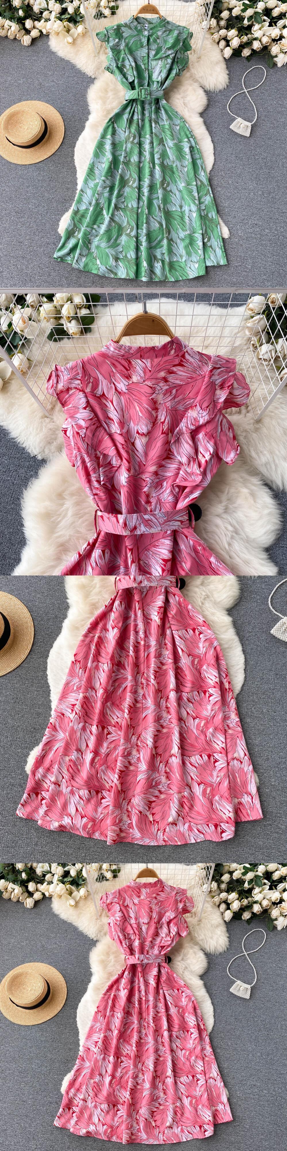 フランスの優しい風ウエストスリムなフリルドレス夏女性芸術感モリ花柄初恋スカート潮 サマー 夏物 lyxaj14458813051