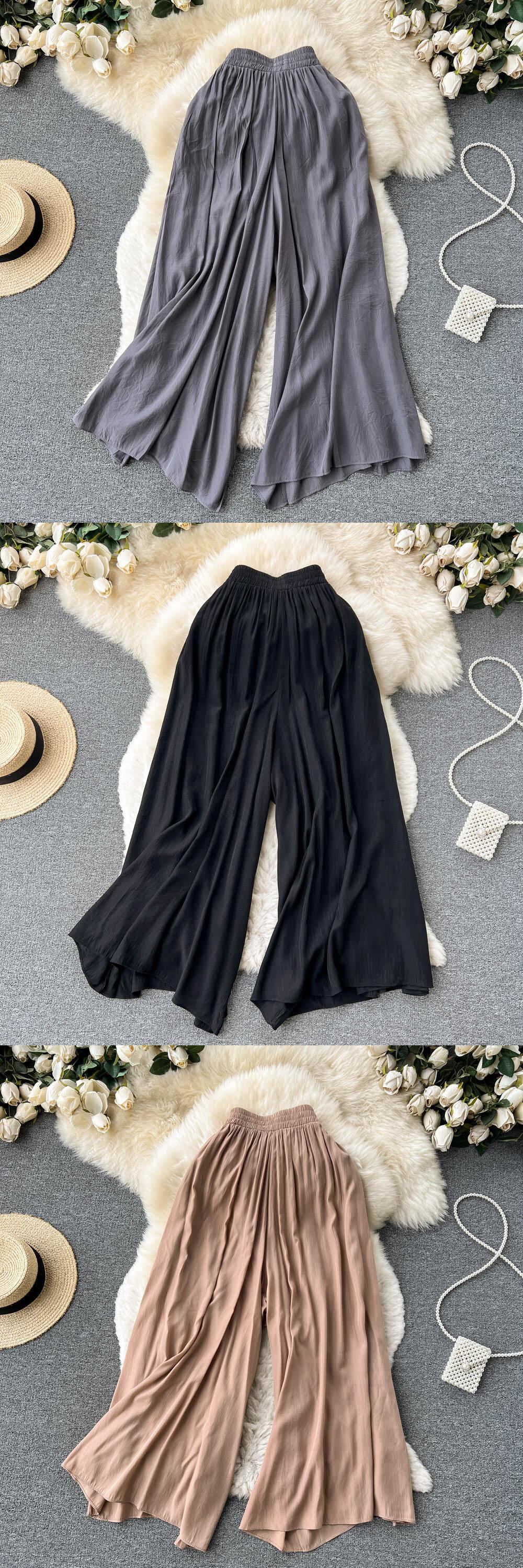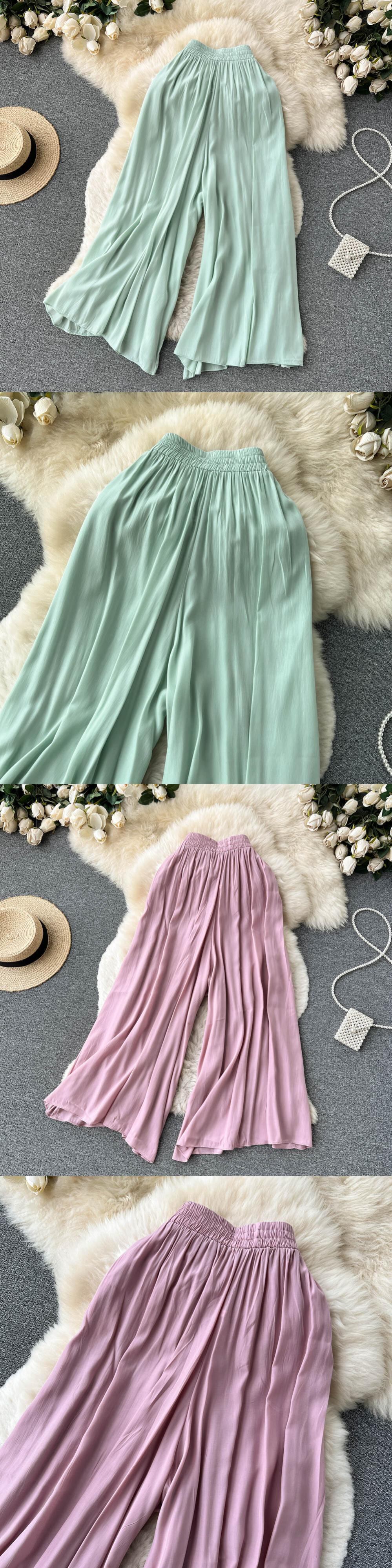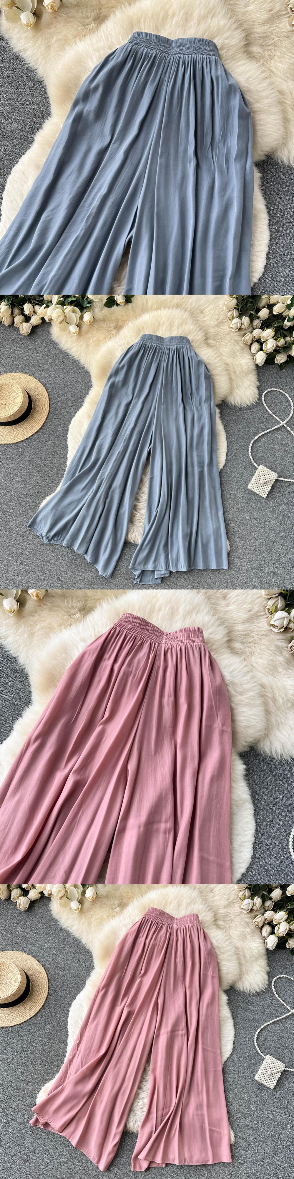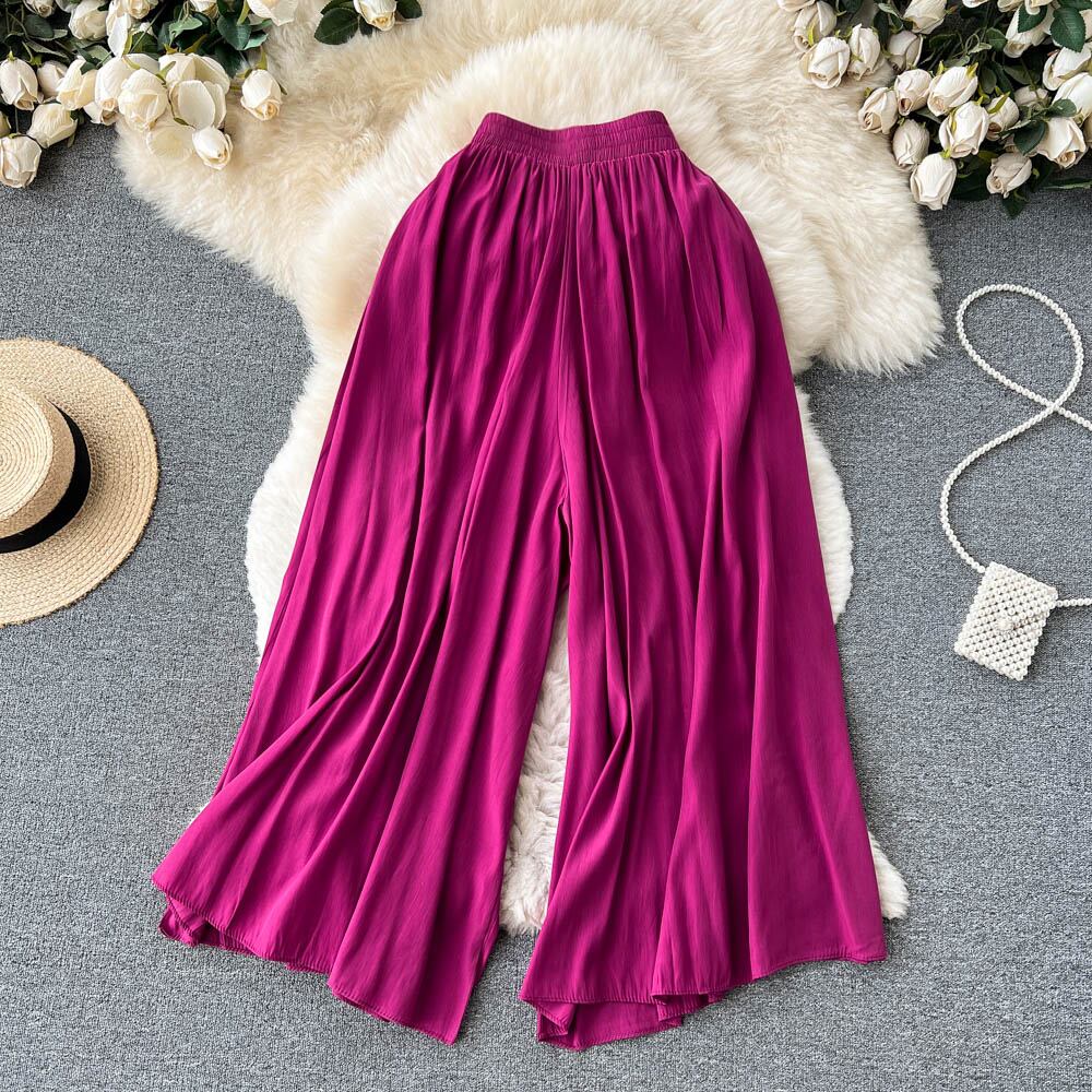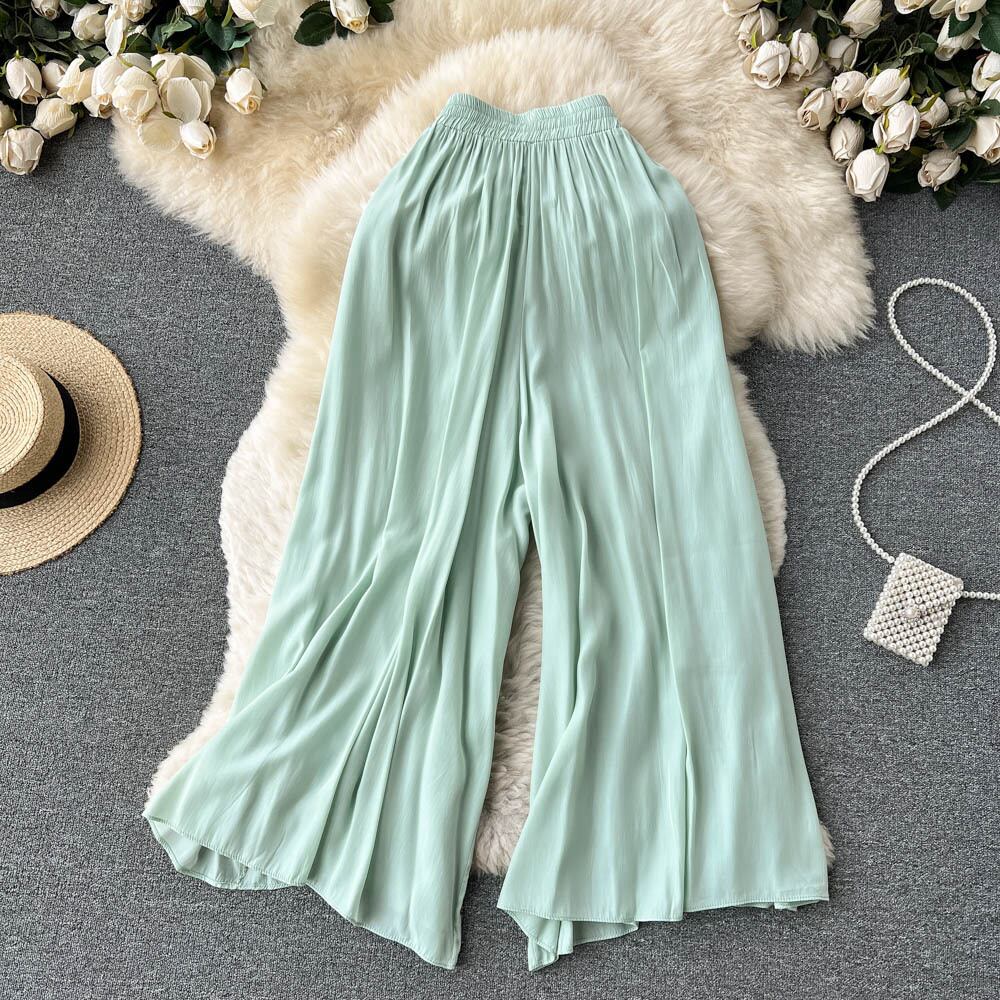 シフォン プリーツ ワイドレッグ パンツ女性の 2022 夏の新しいファッションゆったりと薄いハイ ウエスト ドレープ エレガントなスイング パンツ ハイウェスト サマー 夏物 lyxaj92398367407