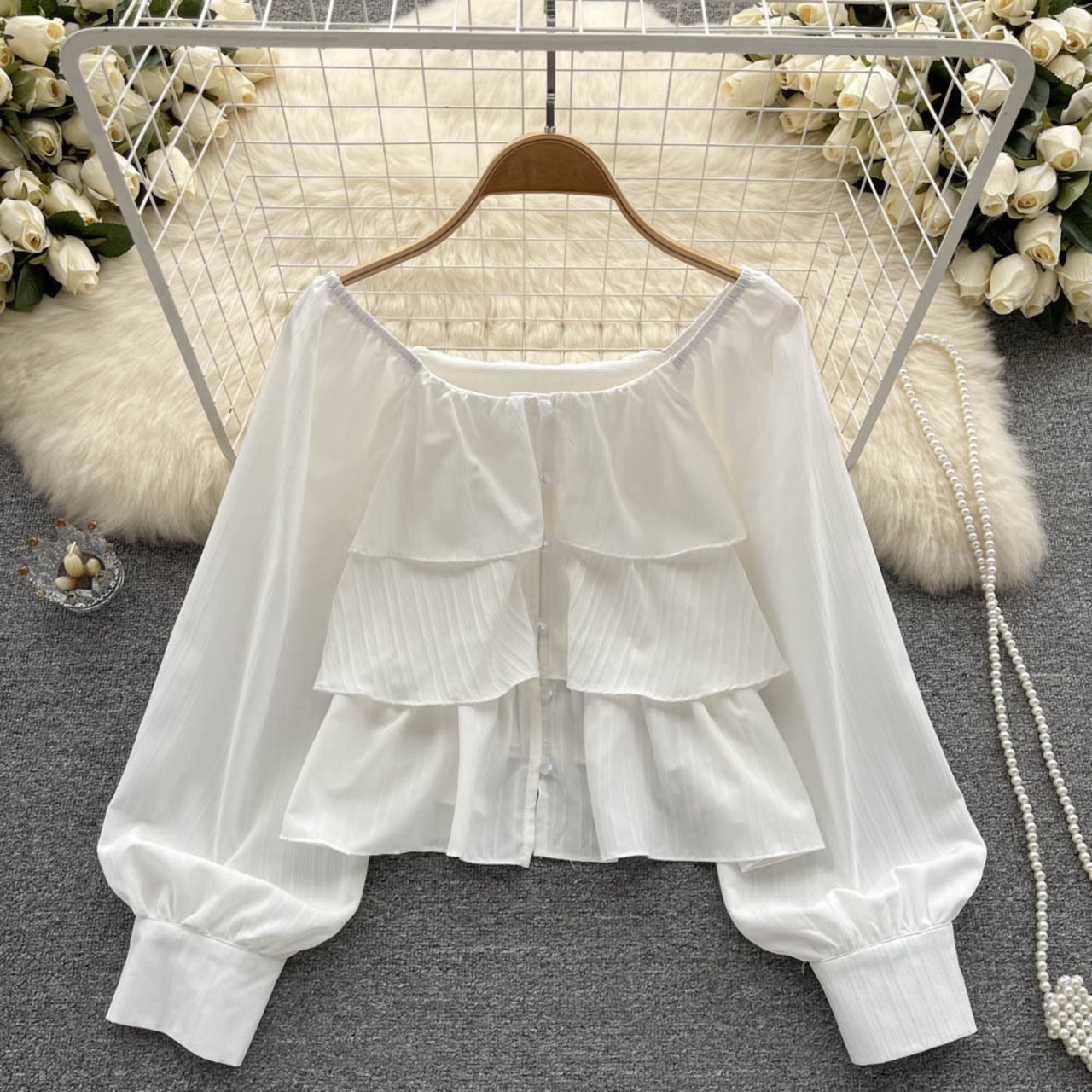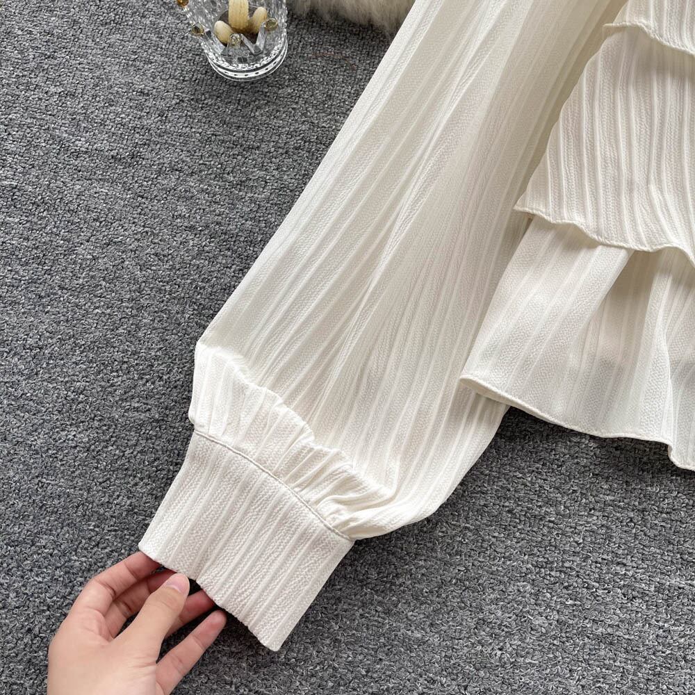 フレンチデザインセンスニッチフリル長袖白シャツトップ秋の女性のハイエンドシックで美しい小さなシャツ ロング ホワイト オータム 秋物 lyxaj55468172209