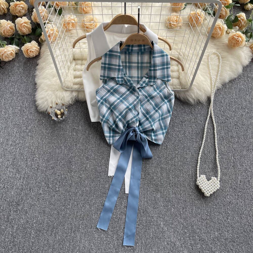 夏韓国語バージョンシックな小さな新鮮な気質ストラップスリムラペルシャツ女性 2022 新ショートノースリーブトップ 半袖 ハーフスリーブ サマー 夏物 lyxaj68571804957