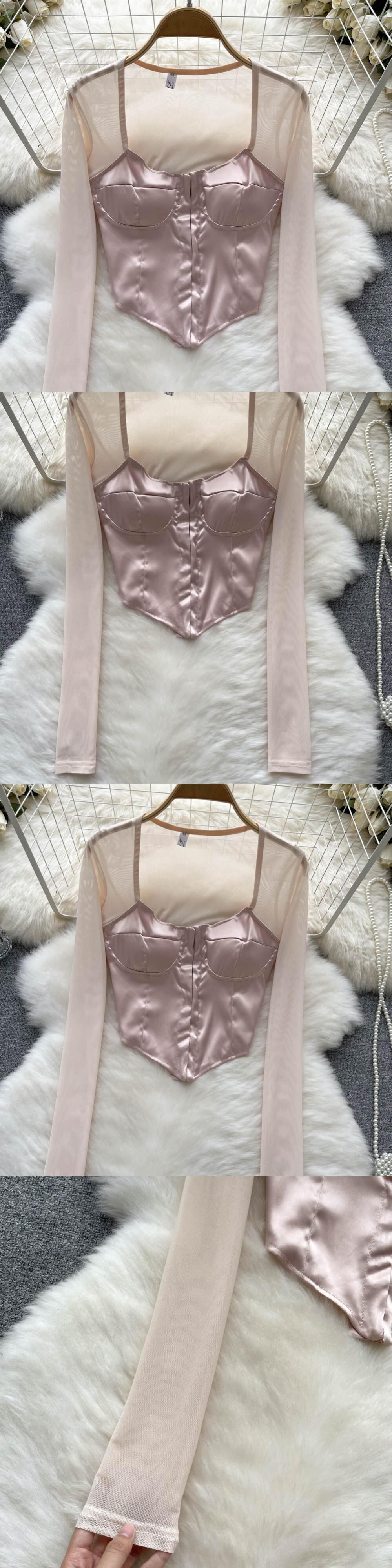 高品質の女性の気質の薄い長袖シャツトップ秋の女性の短いシックな美しい小さなシャツスクエアカラーシャツ ショート ロング オータム 秋物 スクウェア lyxaj62308262298