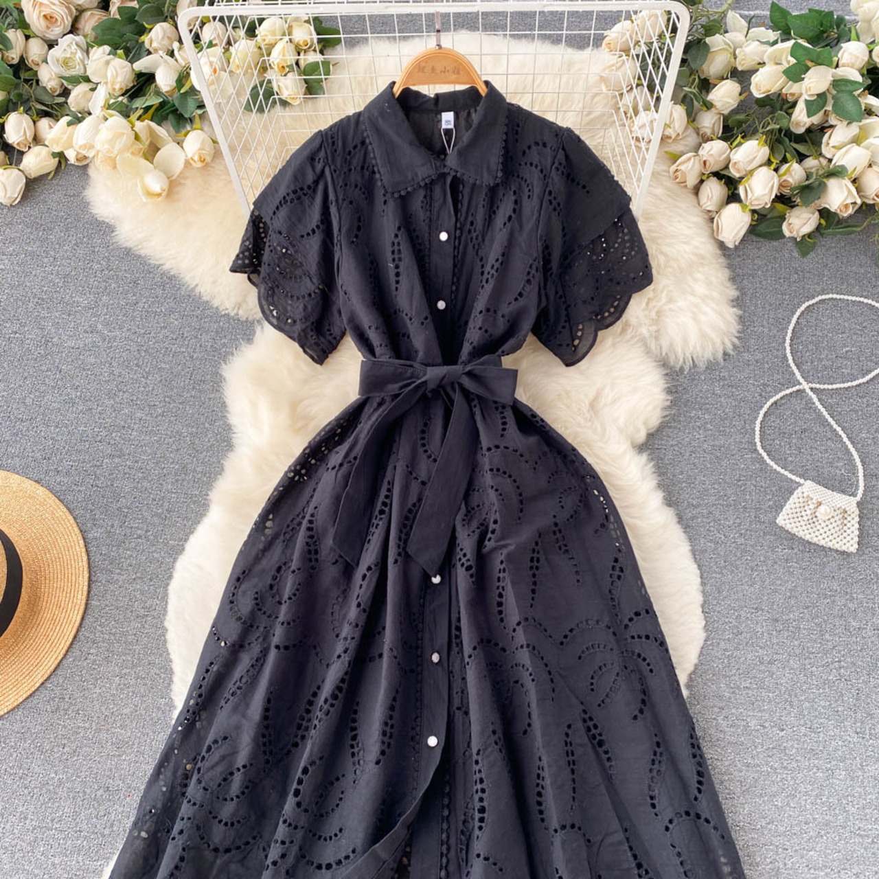 ハイレベルな冷感 ウエストウエスト 薄手 中空 半袖 ワンピ 夏 レディース フレンチシック キレイめ ロングスカート サマー 夏物 lyxaj8924426817