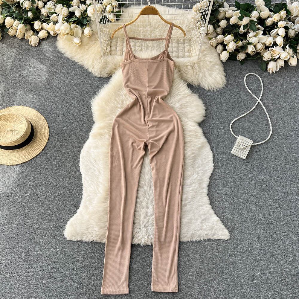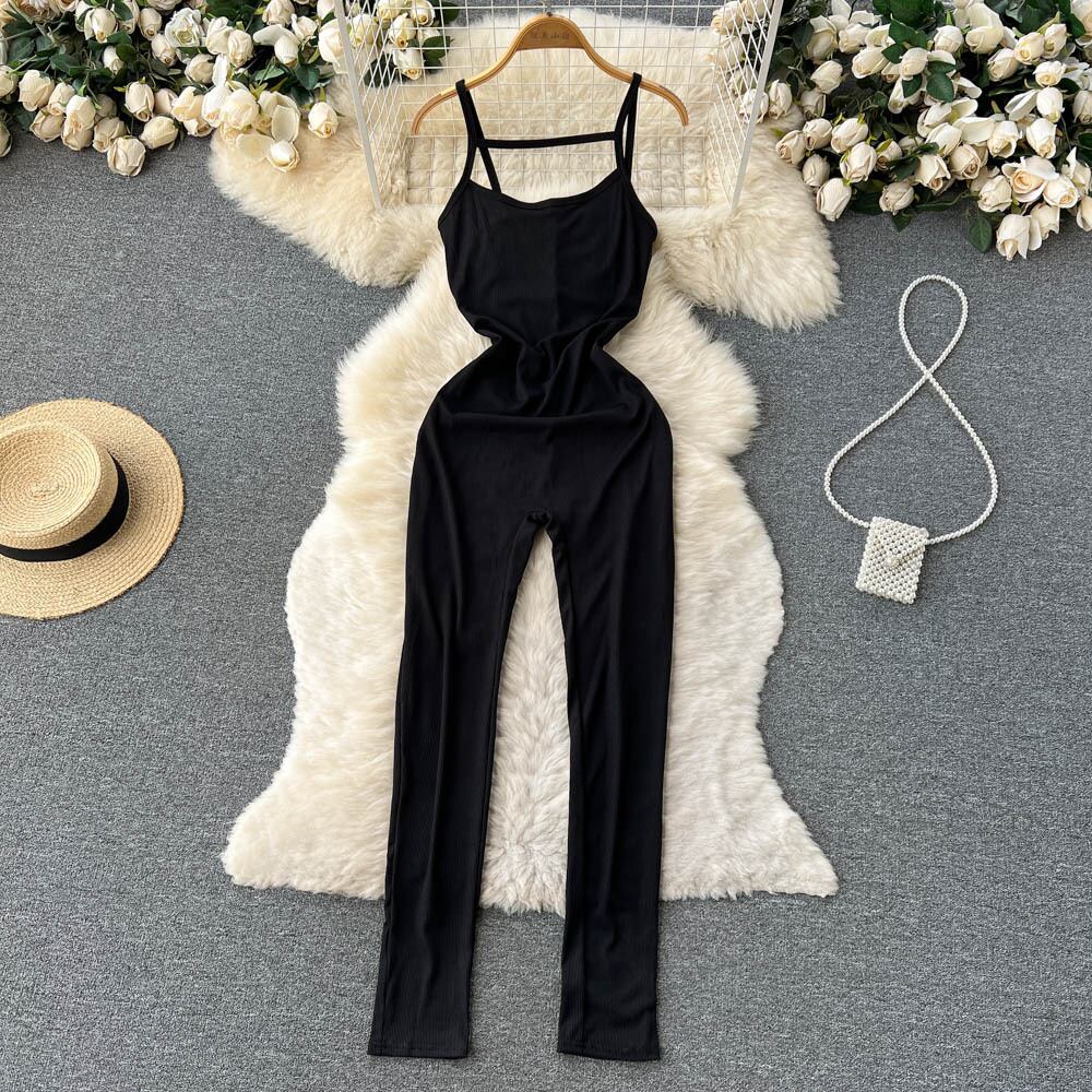 ヨーロッパとアメリカのスタイルのウエストと薄い気質サスペンダー ワンピース パンツ女性の夏の純粋な欲望風ホット ガール ホワイト タイト ストレート パンツ サマー 夏物 ピュア ヨーロピアン lyxaj7309672394