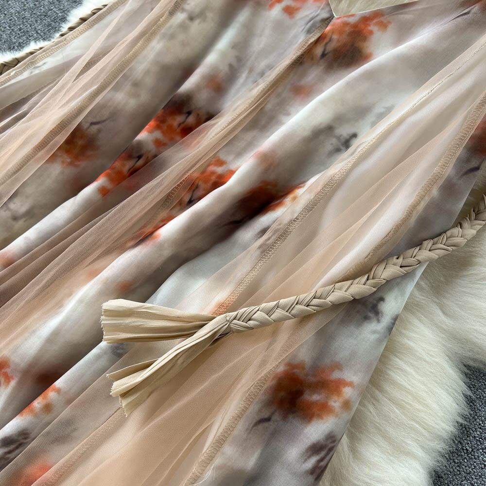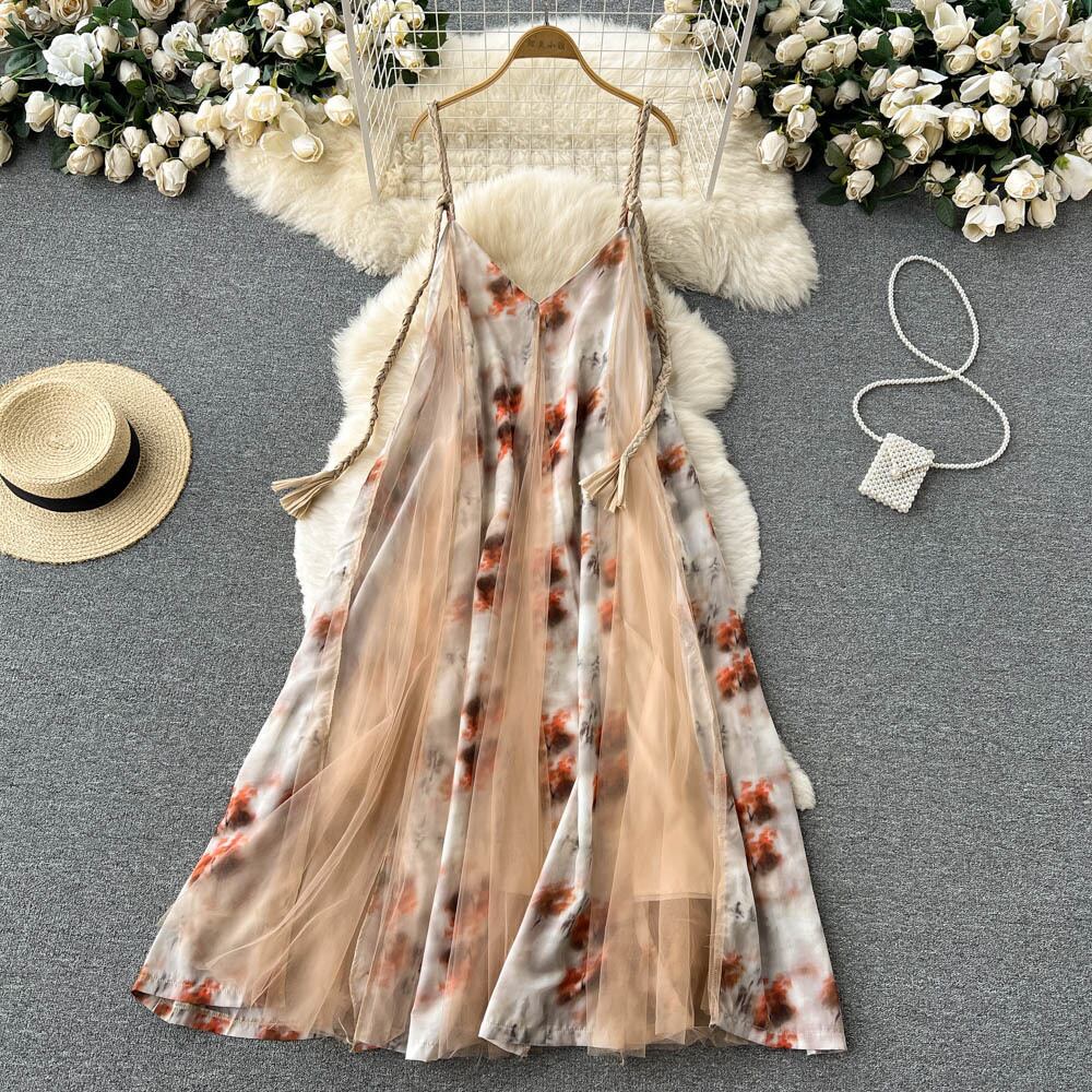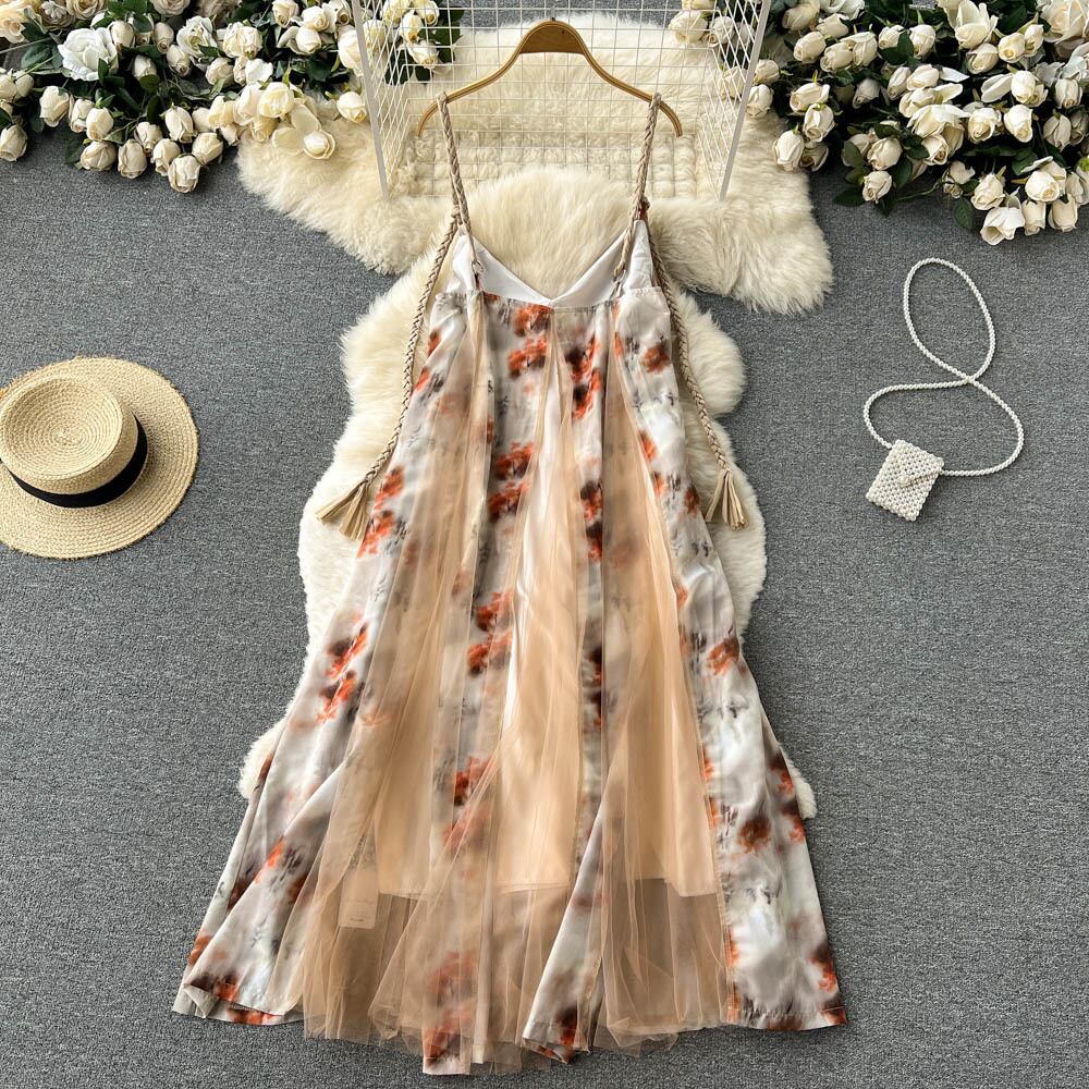 三亜旅行着用女性の夏の写真のサスペンダー スカート ビーチ海辺の休日のドレス スーパー妖精花気質ロング スカート サマー 夏物 花柄 lyxaj75276311460