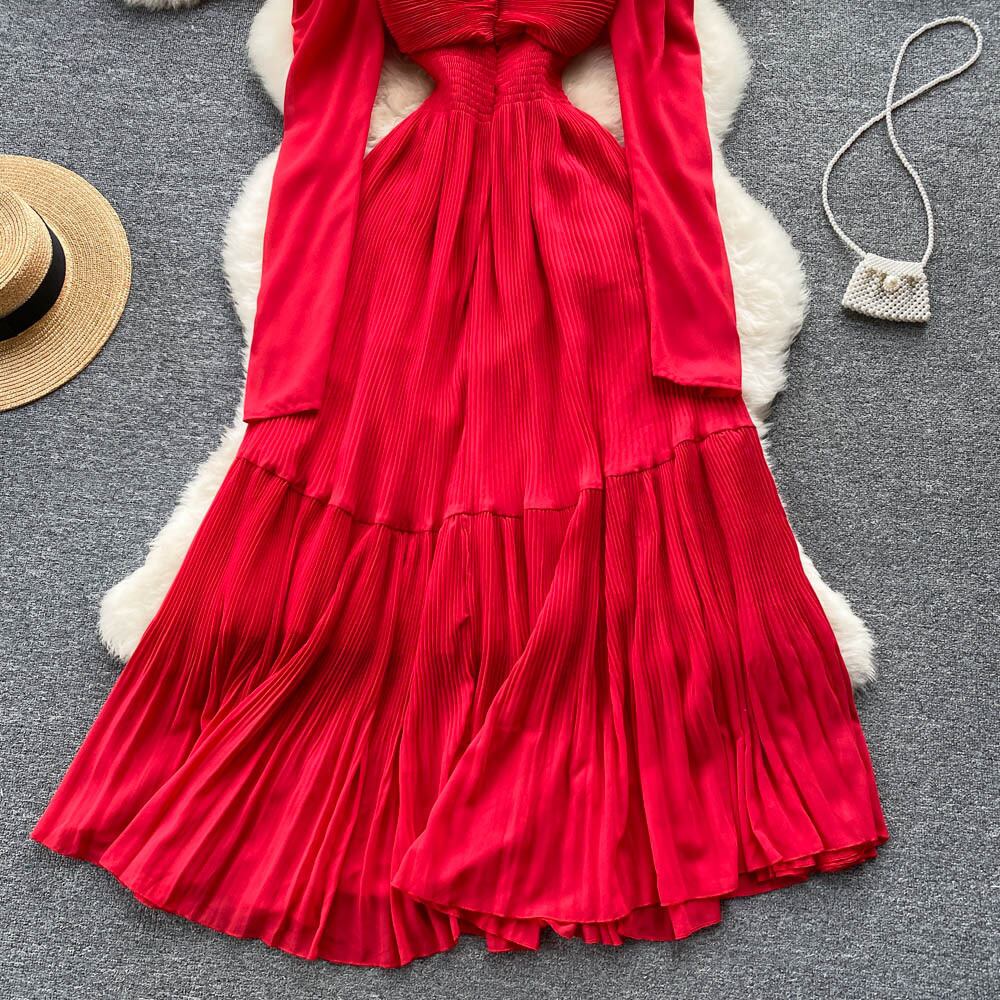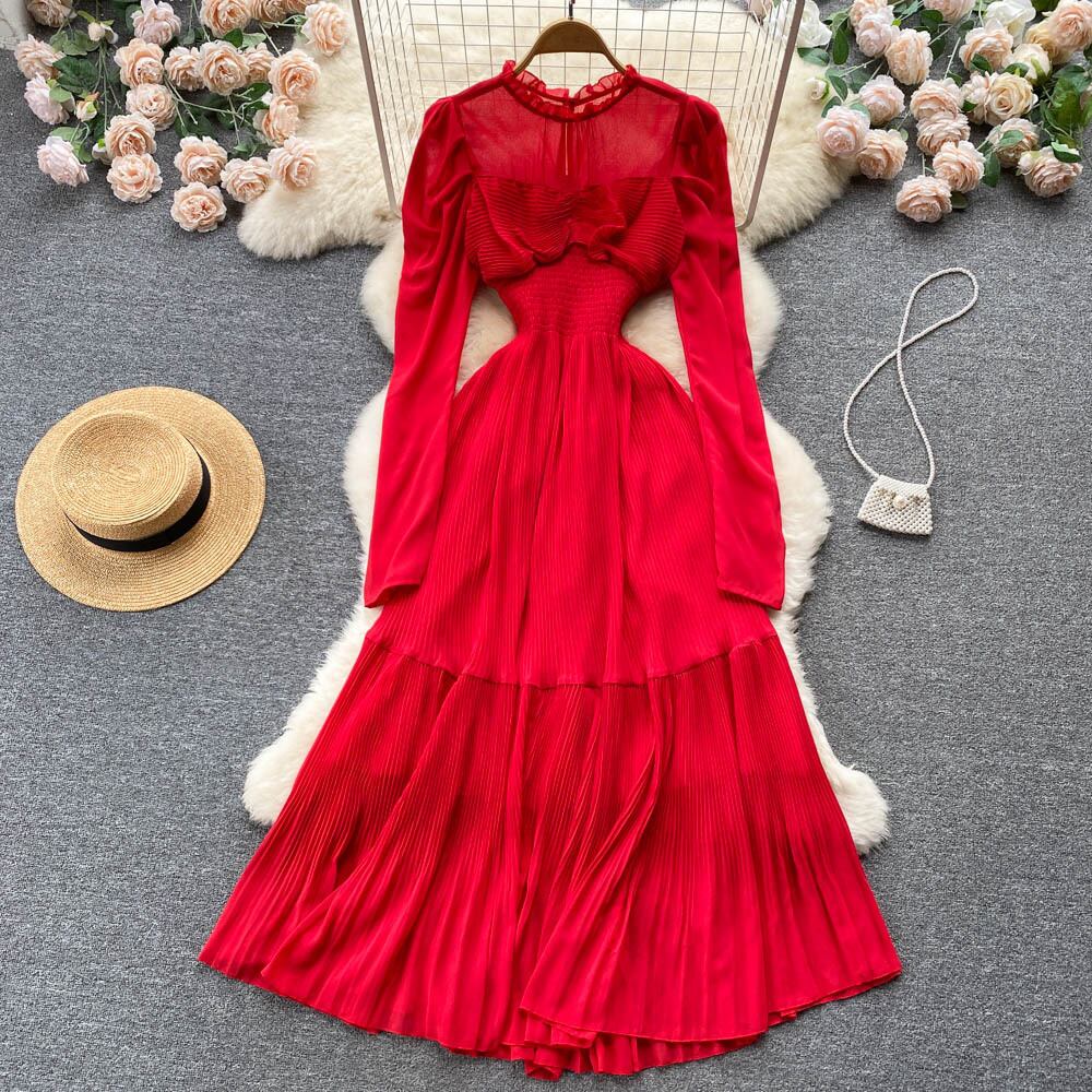 Celebrity elegant temperament dress summer 2022 new thin bubble long-sleeved seaside holiday chiffon long skirt ロング シフォン エレガント サマー 夏物 スカート lyxaj61852724793
