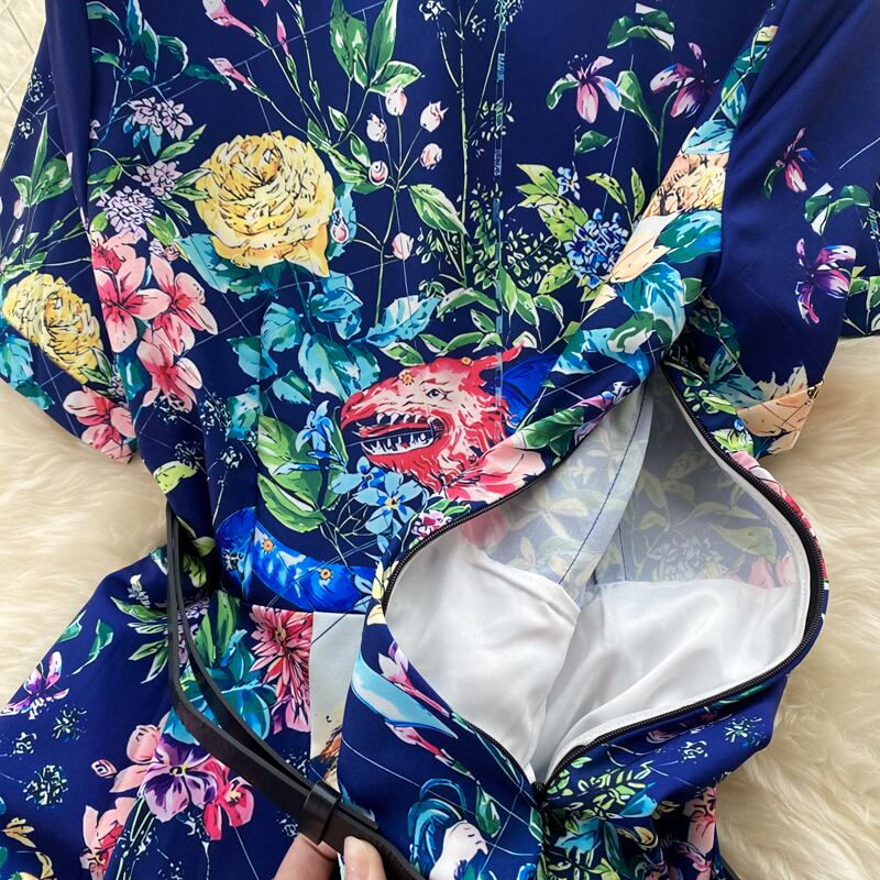 Ethnic style waist slim POLO collar dress summer new women's chic and beautiful short-sleeved temperament long skirt ロング サマー 夏物 スカート スリム lyxaj12481296679
