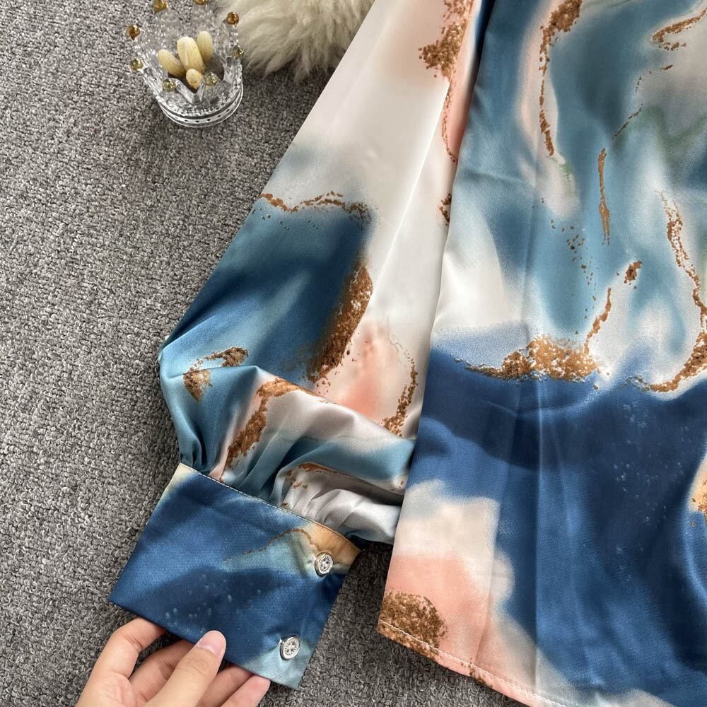 Retro tie-dye design sense niche high-end eign style French shirt women's spring and autumn loose temperament thin long-sleeved shirt ロング レトロ スプリング 春物 オータム 秋物 lyxaj81426892409