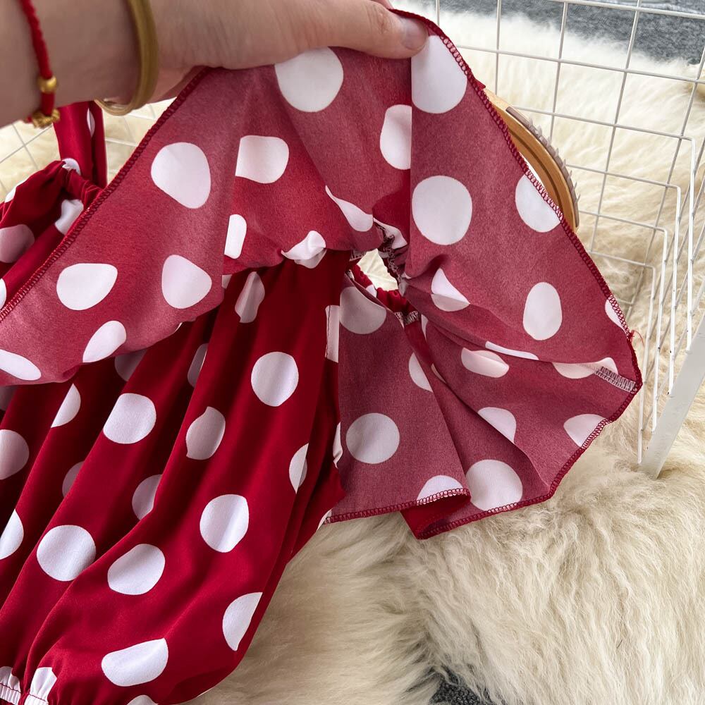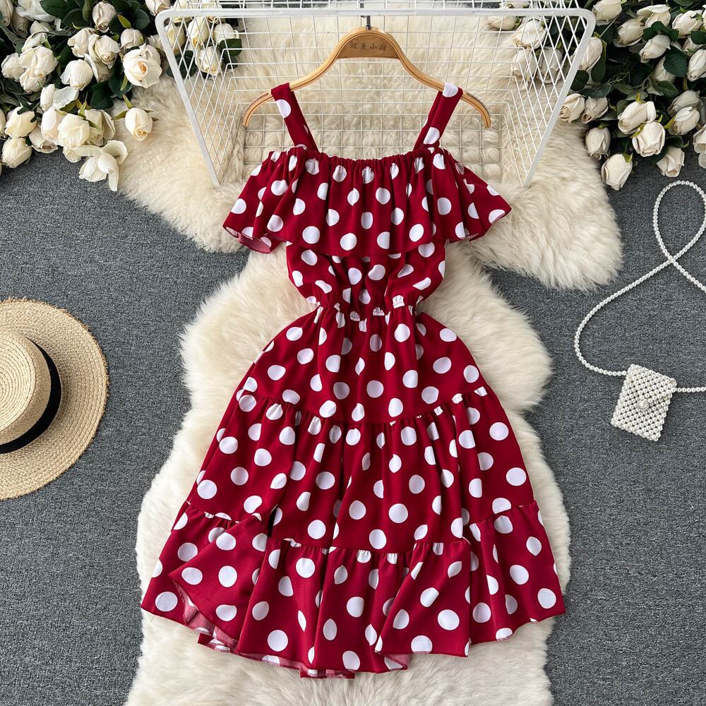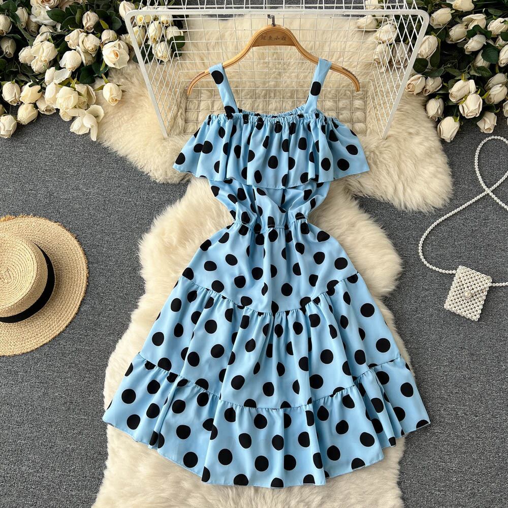 ハンファンスモールフレッシュショートポルカドットドレスレディースサマー202新作スウィート蓮の葉ワンワードカラーサスペンダースカート 大人ガーリー キュート カジュアル 夏物 lyxaj36816081434