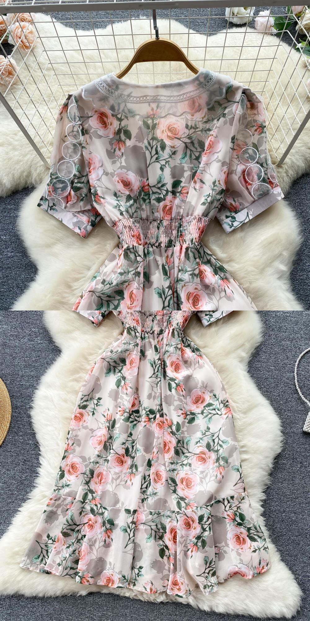 ティーブレイクフレンチハイエンドラペルフローラルドレス女性の夏のスリムでスリムなエレガントな気質スーパーフェアリーAラインスカート サマー 夏物 花柄 lyxaj45747065446