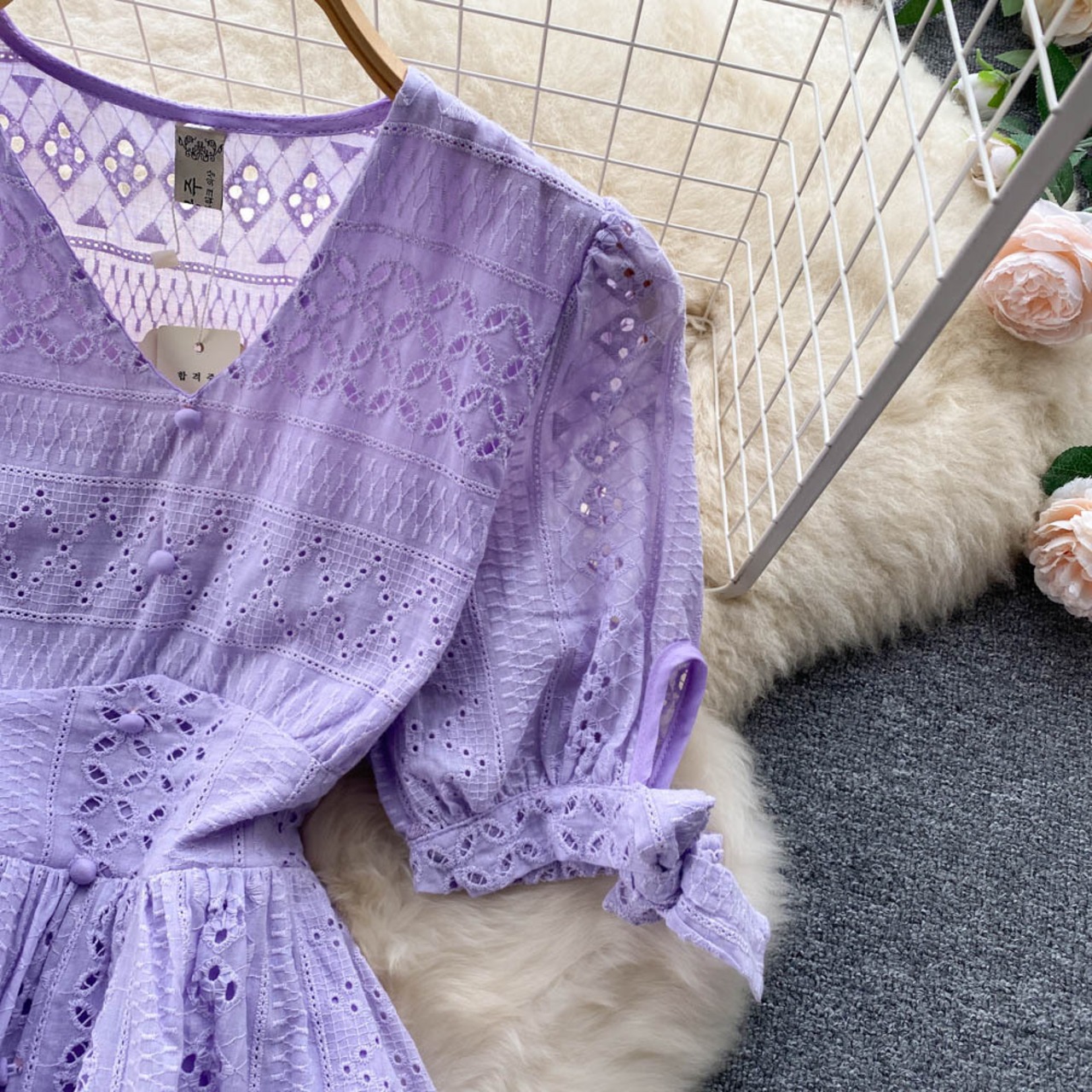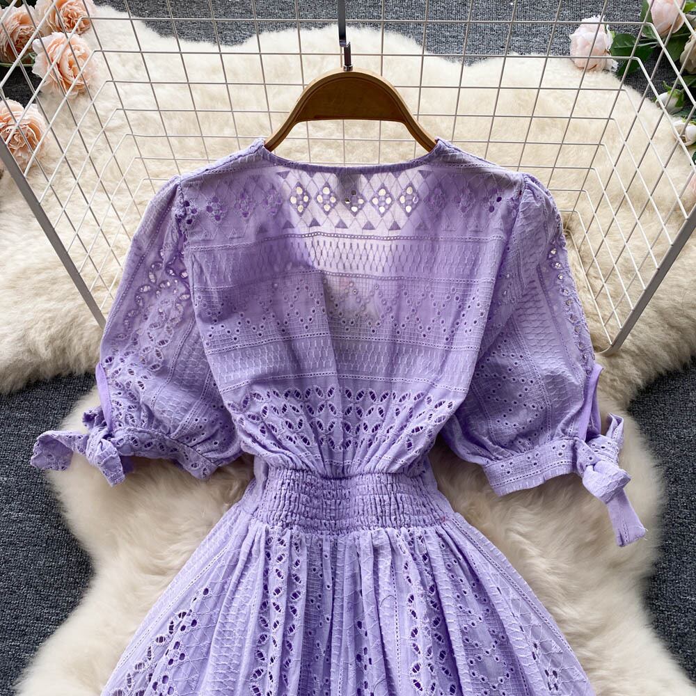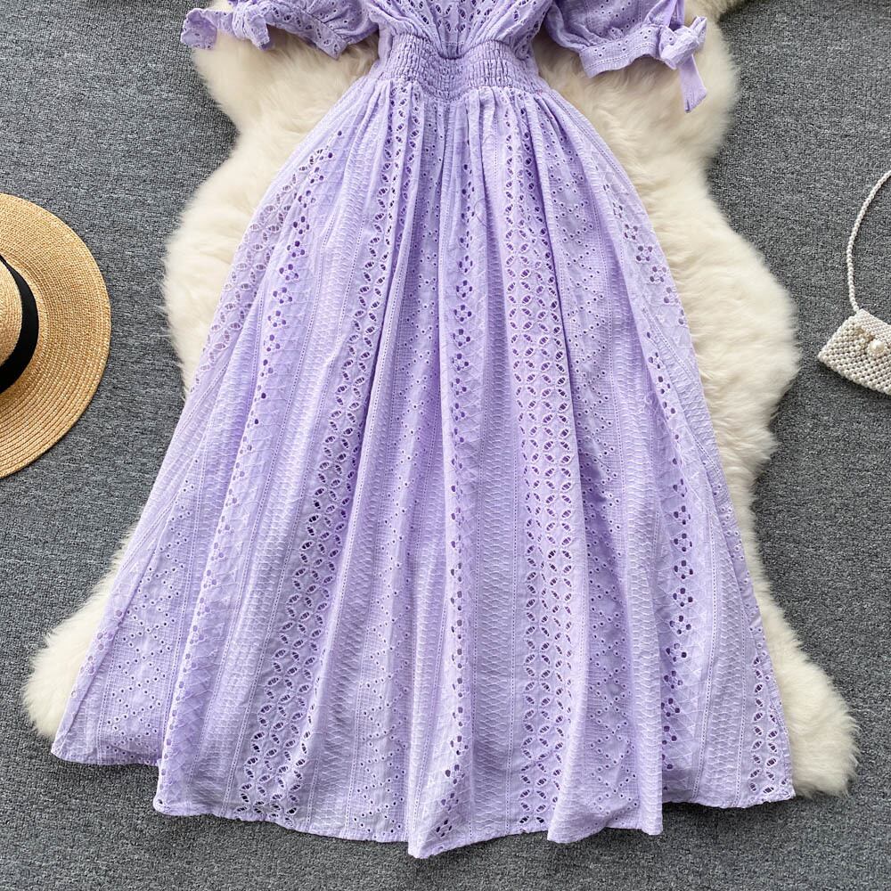 フレンチ V ネック ドレス女性の 2022 夏新ウエスト痩身気質年齢を減らす無地パフ スリーブ ミディ スカート サマー 夏物 Vネック ソリッドカラー lyxaj15558636263