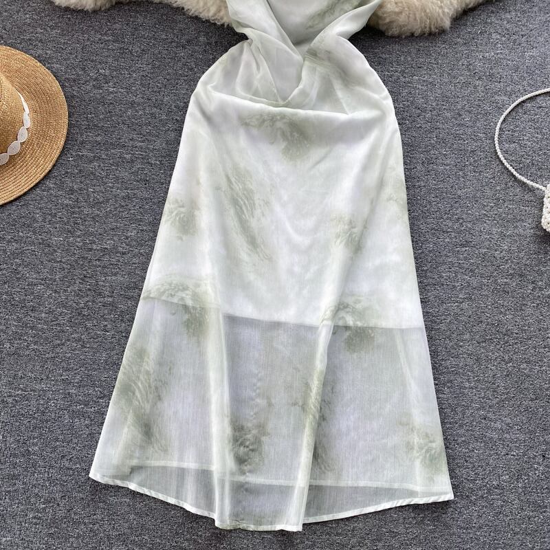 涼風ノースリーブ吊りネックドレス夏の女性の小さな海辺の休暇のウエストと細いAラインのロングスカート サマー 夏物 lyxaj61847909985
