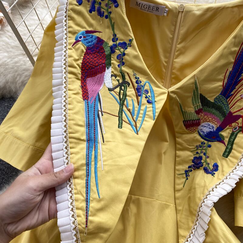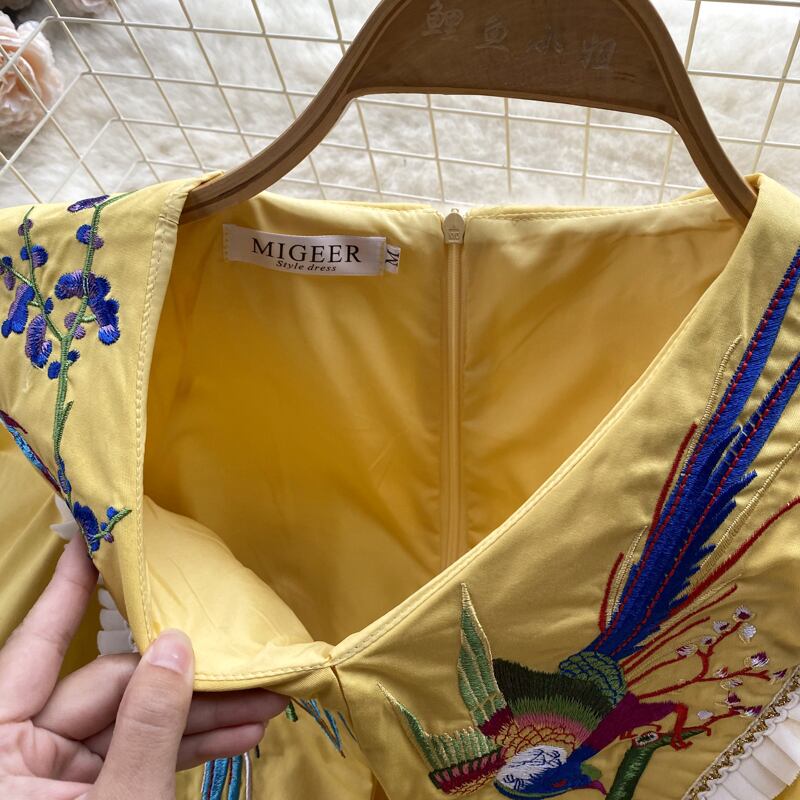 ハイエンドの寒風シックな見事な刺繍人形の襟のドレス夏の女性のウエスト半袖ミドル丈のスカート レッド サマー 夏物 lyxaj92202827390