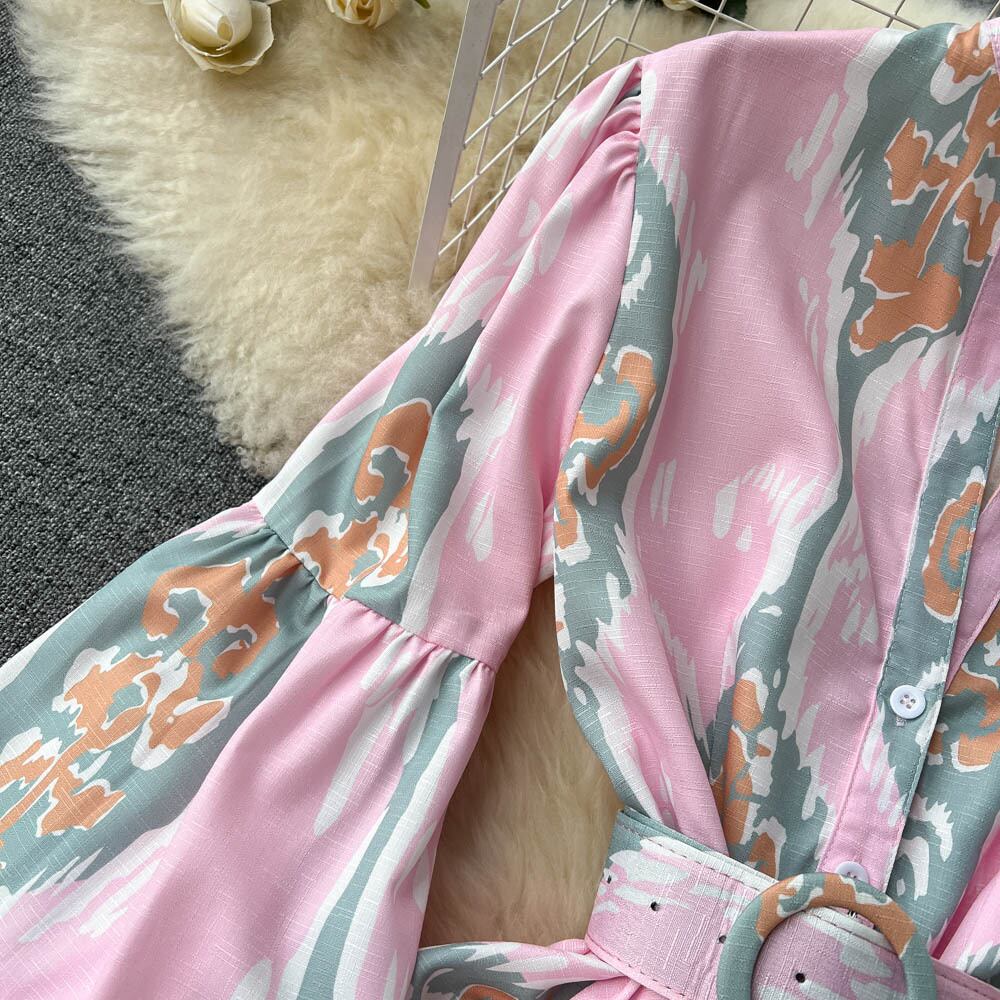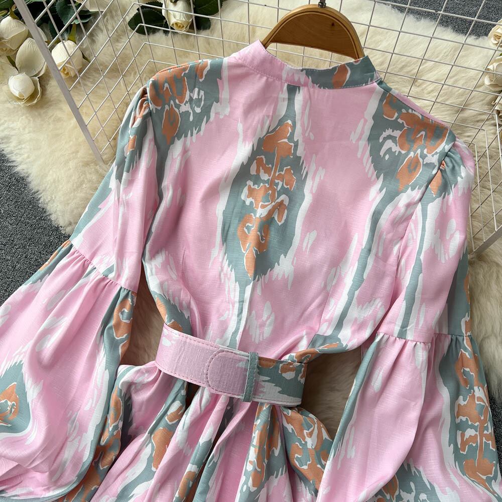 有名人の気質ウエストスリムランタンスリーブプリントドレス女性 2022 新しいライトおなじみのスタイルシャツショートスカートトレンド lyxaj68499659574