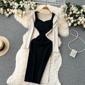 フレンチレディース気質ハイエンド策略セクシーサイドスリットステッチヒットカラードレス女性ライト調理ヒップスカート lyxaj44414978039