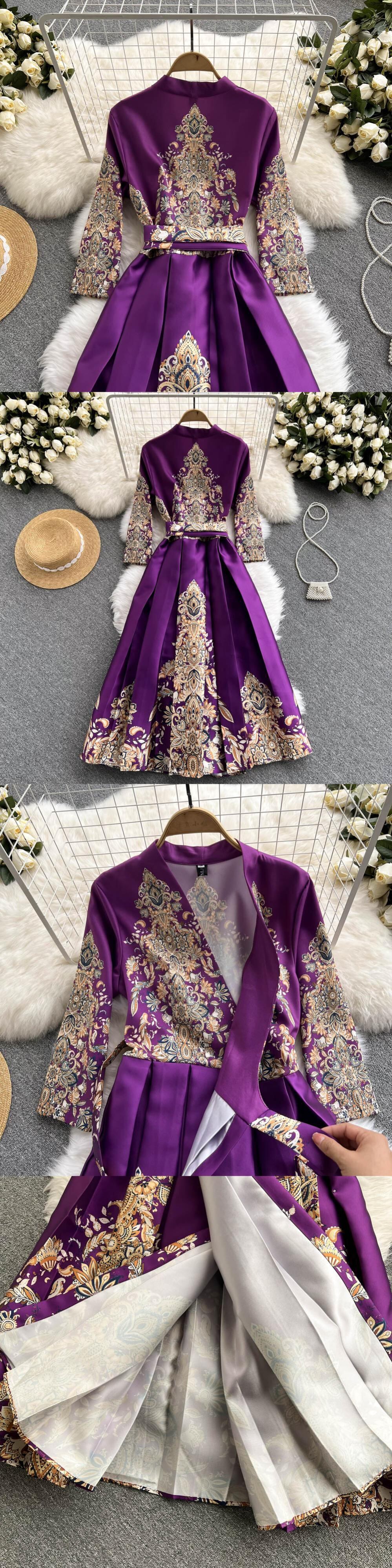 レトロなコートスタイルのハイエンドな気質のVネックドレス秋と冬の新しいレースアップウエストのエレガントな女性のイブニングドレスのスカート オータム 秋物 ウィンター 冬物 lyxaj22894473924