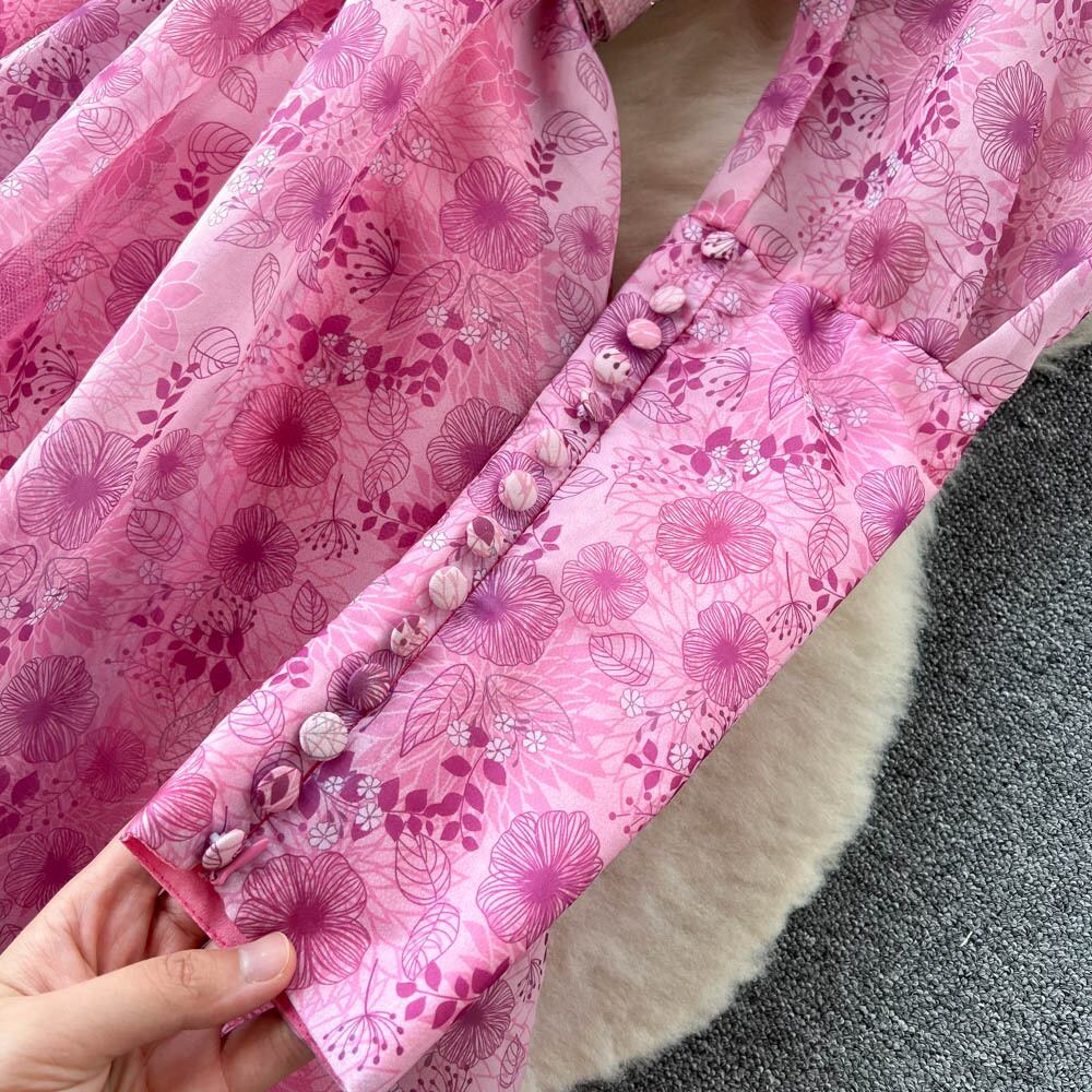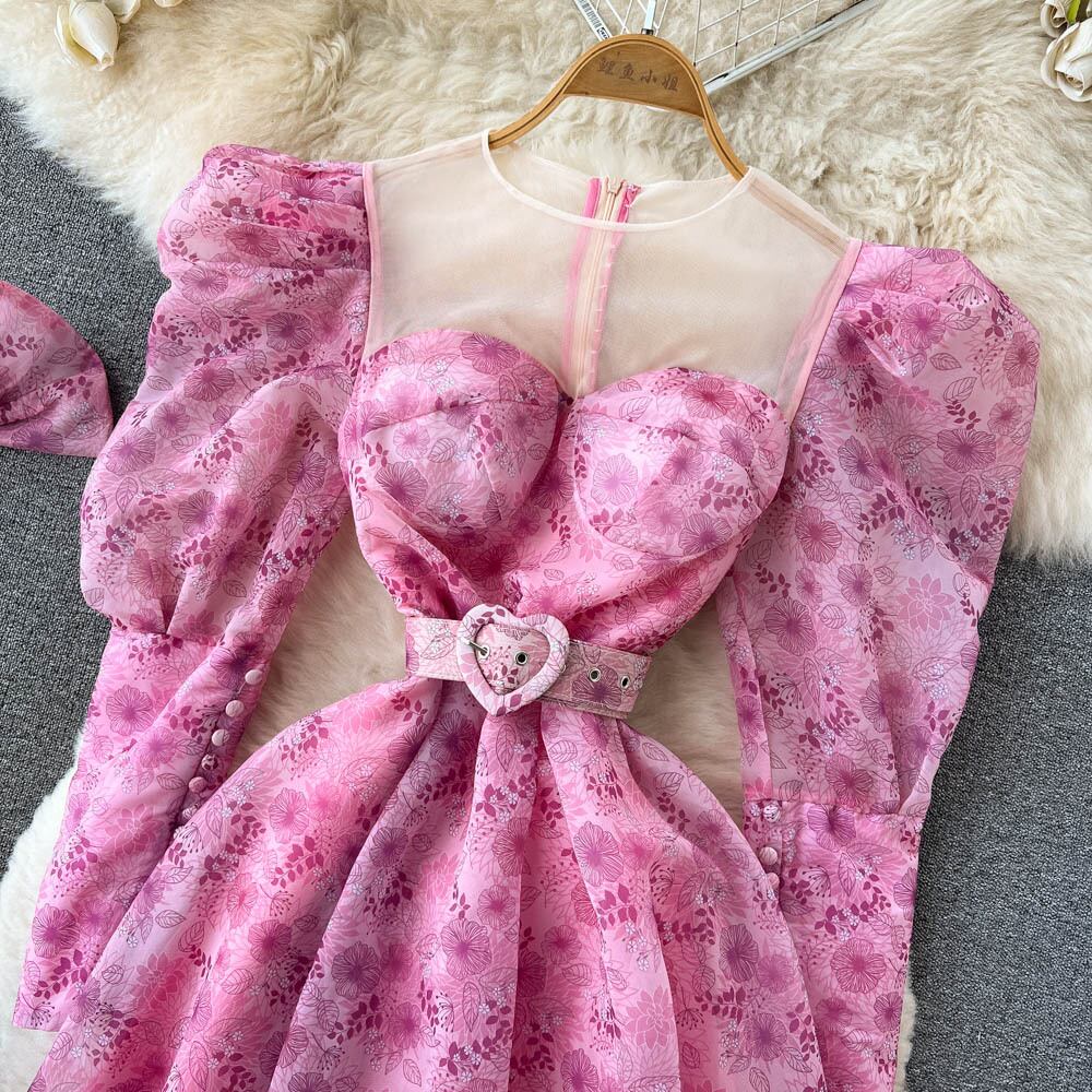 Palace style mesh stitching puff sleeve dress 2022 summer women's dress waist is thin and beautiful floral dress レース サマー 夏物 メッシュ 花柄 ステッチ lyxaj92313039835
