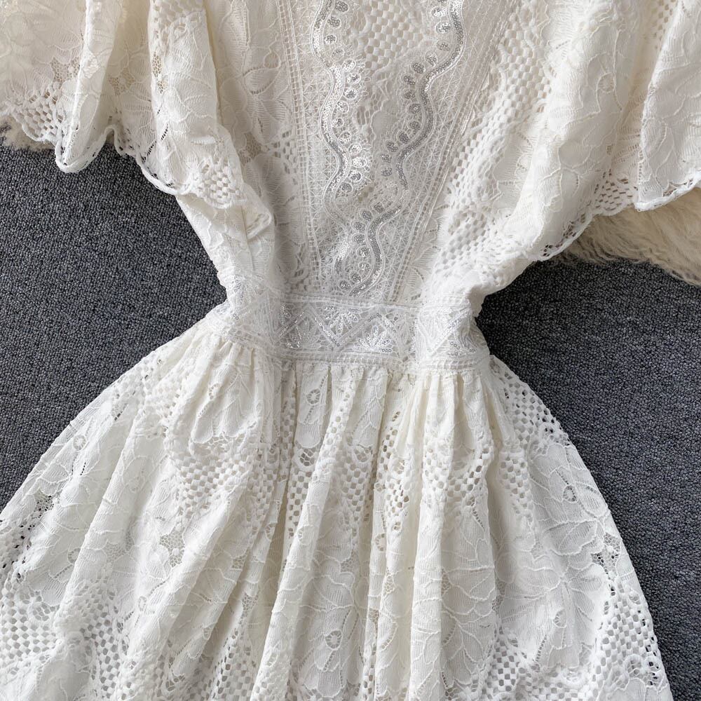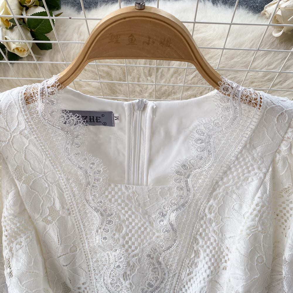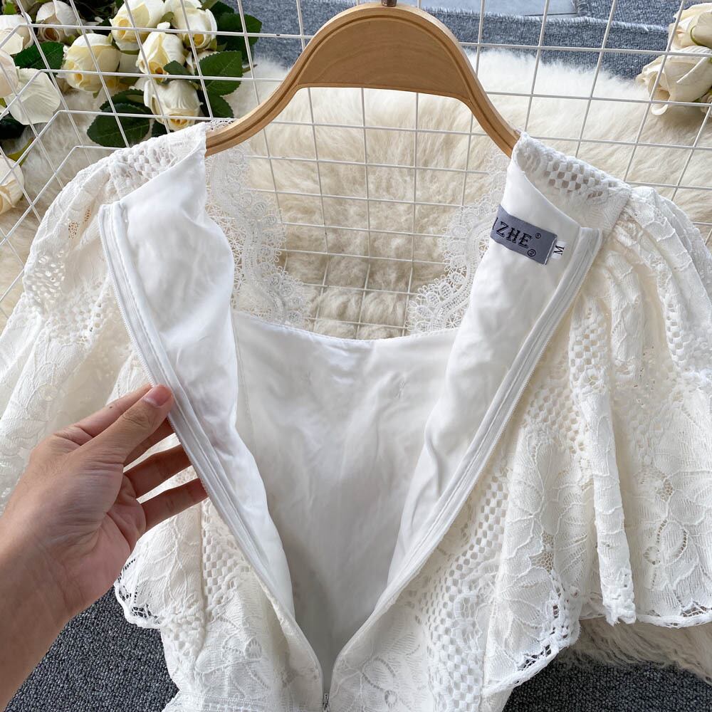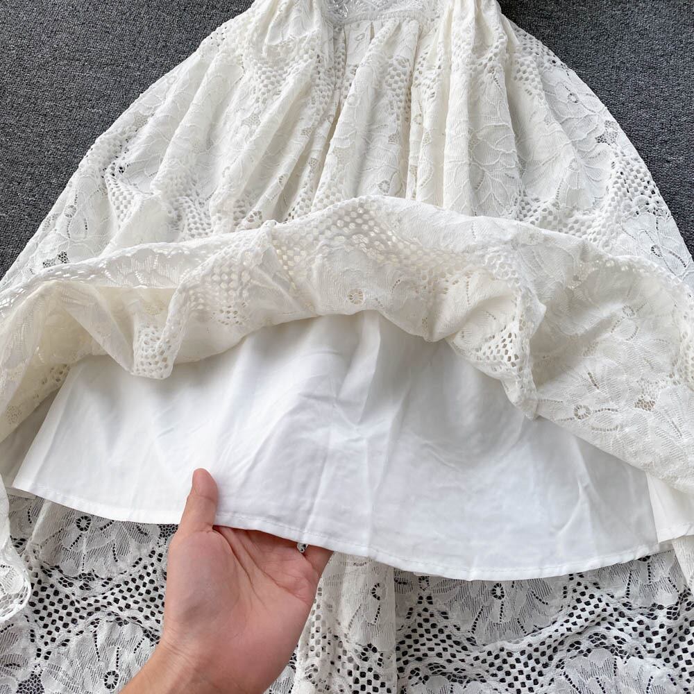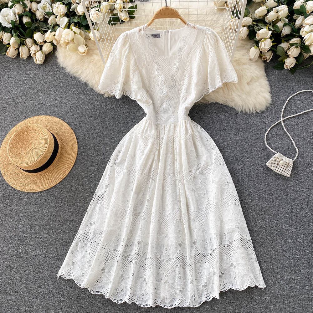 フランスのハイエンドの妖精の白いドレスの女性の2022年夏の新しいウエストスリムで甘い気質のレースのスカート ホワイト 大人ガーリー スウィート キュート カジュアル サマー 夏物 lyxaj65035427904