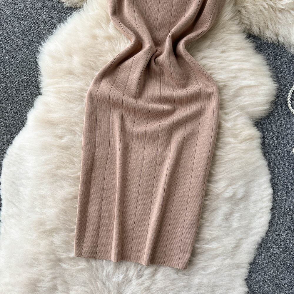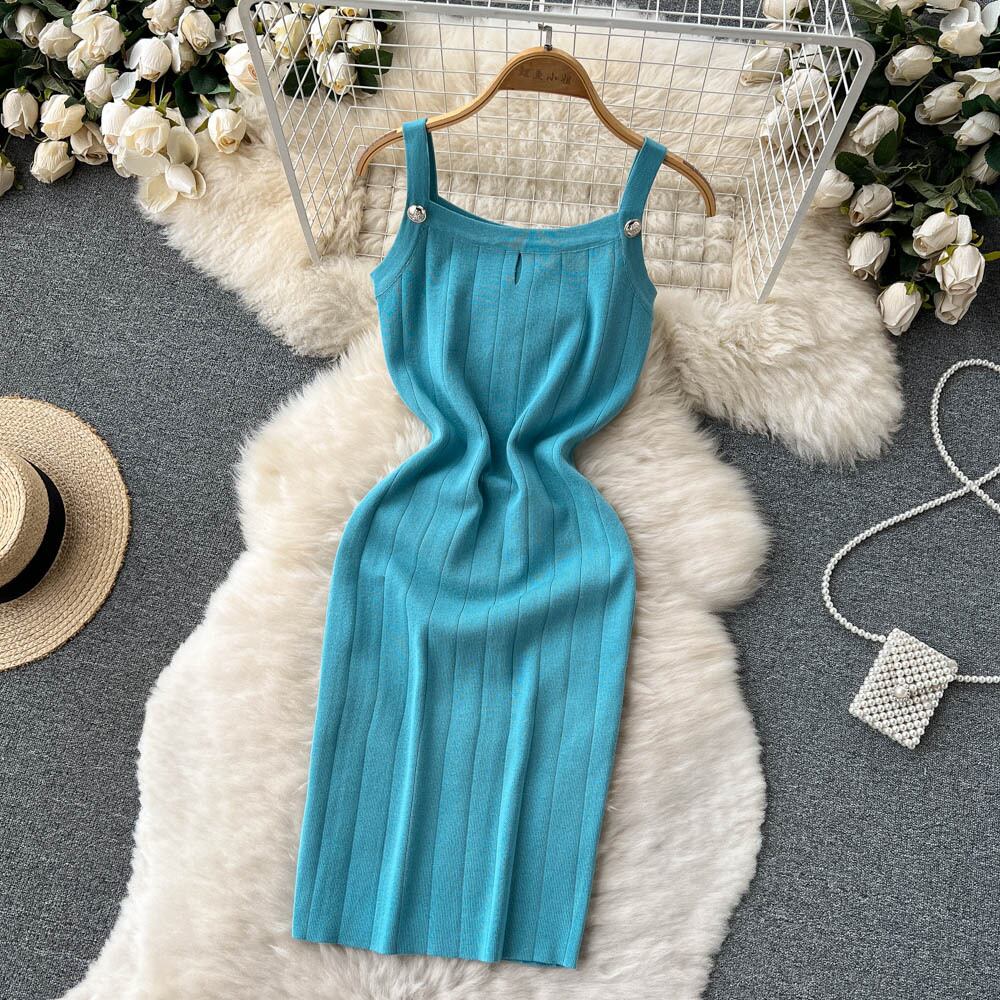 フレンチジェントルスタイルスクエアネックサスペンダー弾性ニットドレス女性の夏のスリムフィットとスリムな気質パッケージヒップ底入れスカート エラスティック 伸縮 サマー 夏物 スクウェア lyxaj99284492606