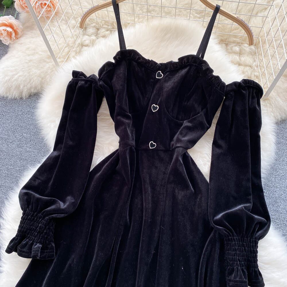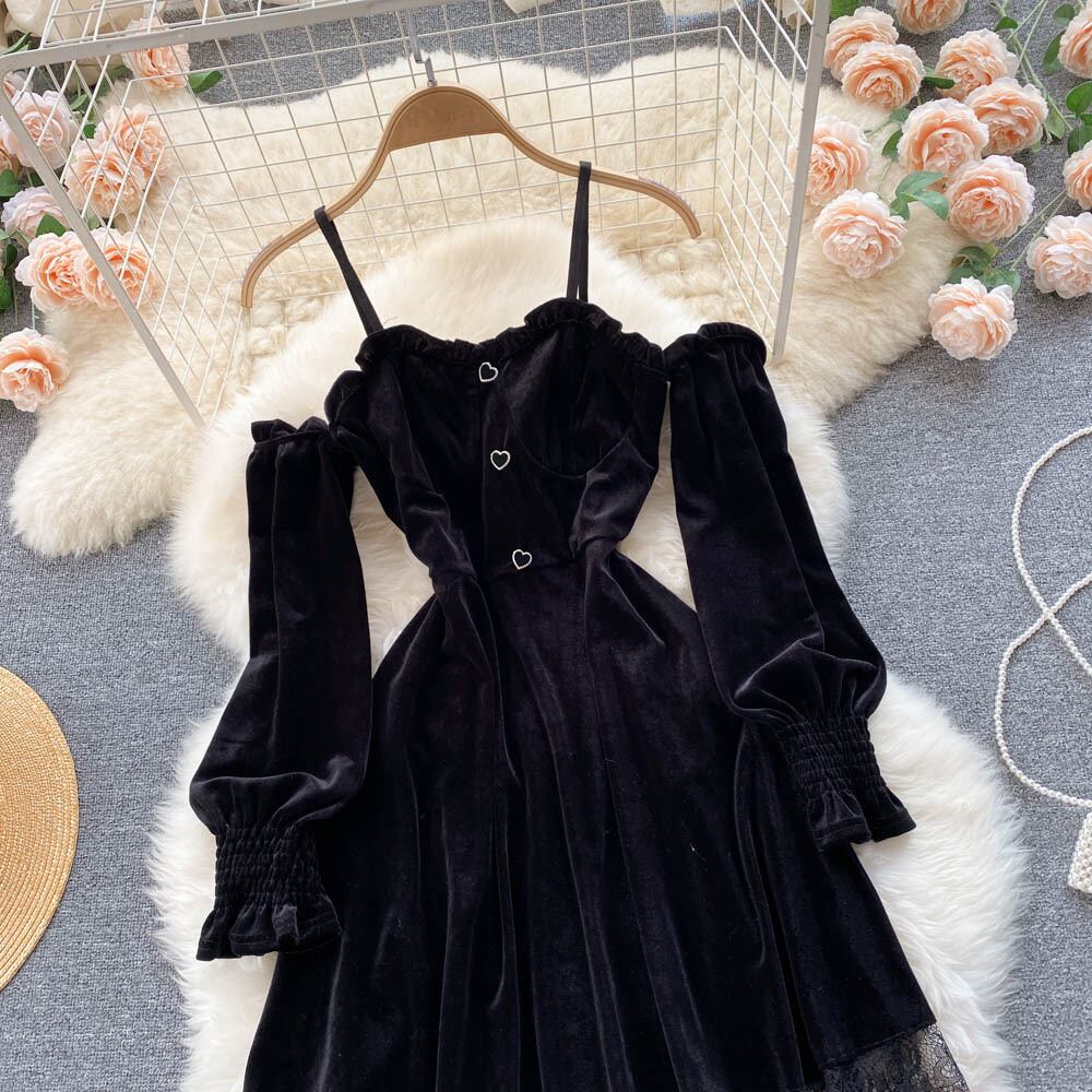 甘くてスパイシーなスタイルのワンショルダーストラップのセクシーなベルベットのドレス、小さなハイエンドの気質のウエストレースのステッチの短いスカート ショート 大人ガーリー スウィート キュート カジュアル lyxaj19333577219