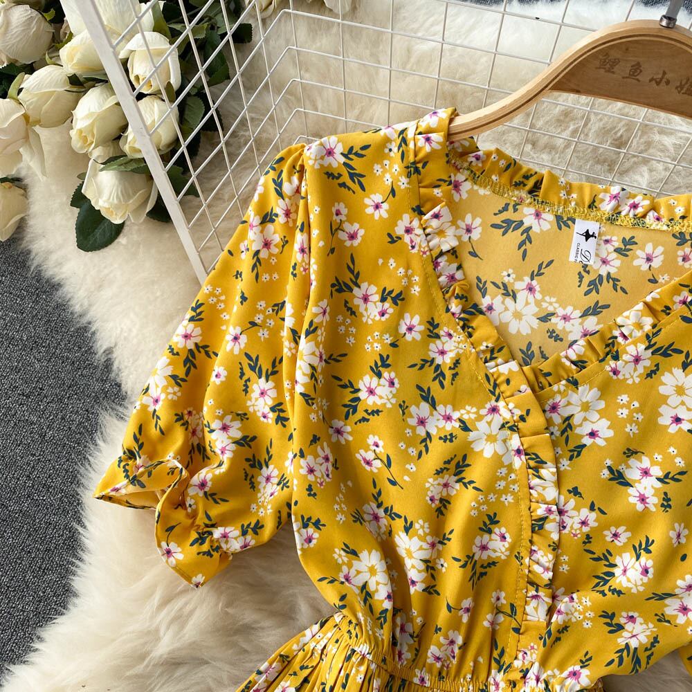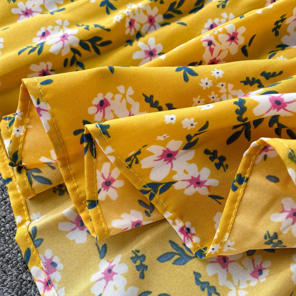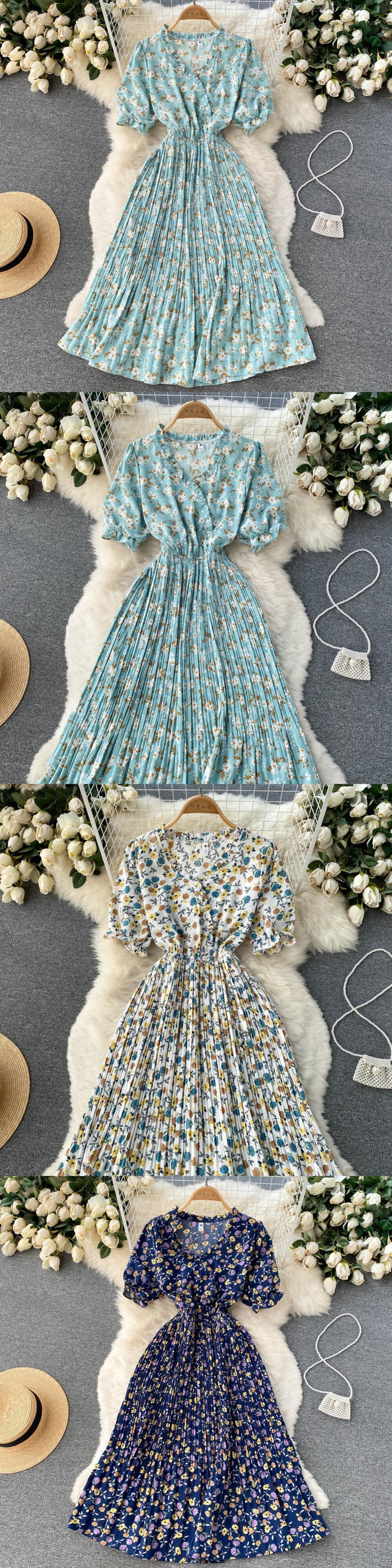 小さな新鮮な 2022 夏の新しい花柄の薄いドレス シフォン フェアリー スカート気質プリーツ膝丈スカート サマー 夏物 lyxaj38098240854