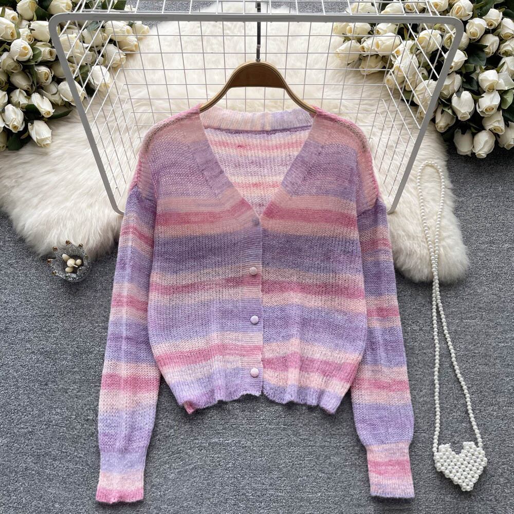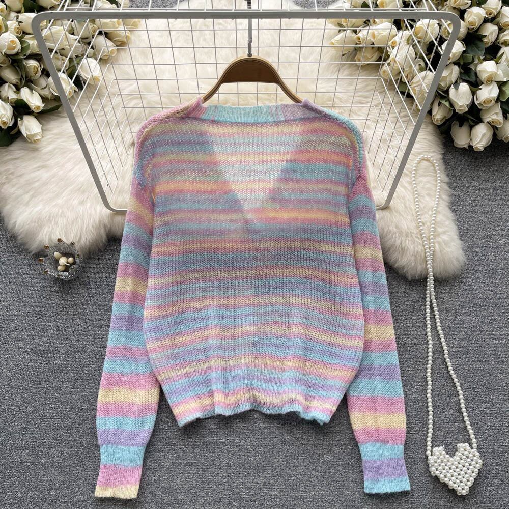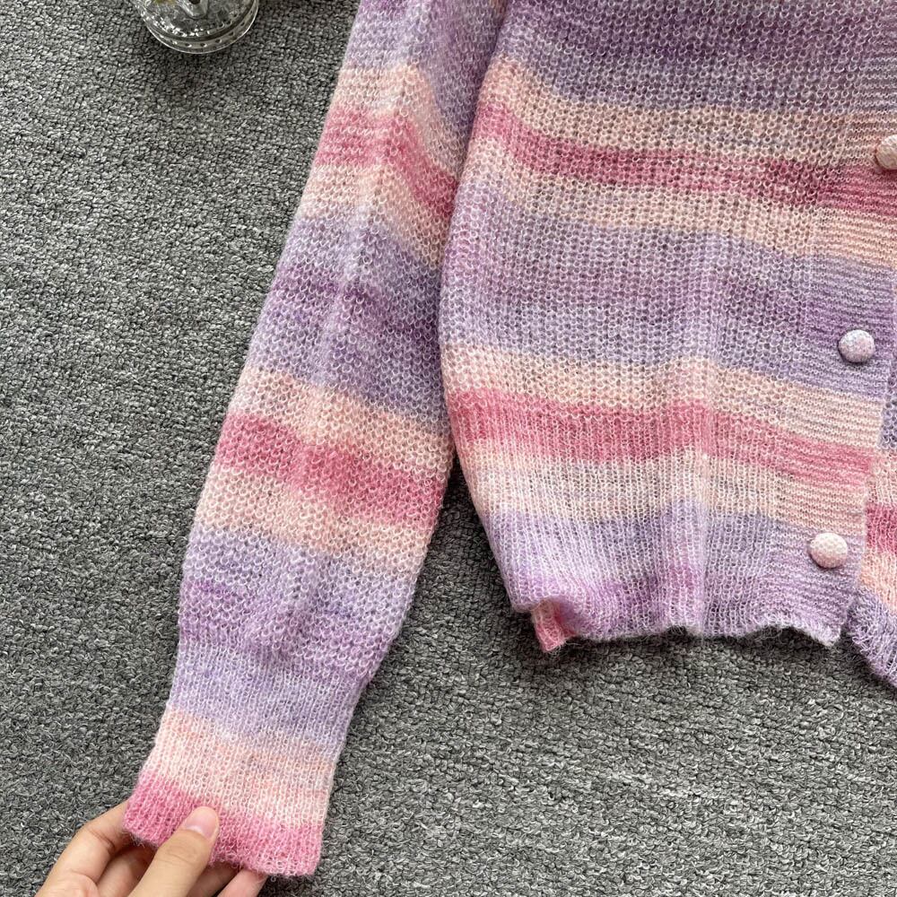 フレンチスウィートで優しいスタイル コントラストカラー ストライプ Vネック ニット カーディガン コート 秋 レディース ゆったり 長袖 トップス トレンド ロング 大人ガーリー キュート カジュアル オータム 秋物 lyxaj44883689106
