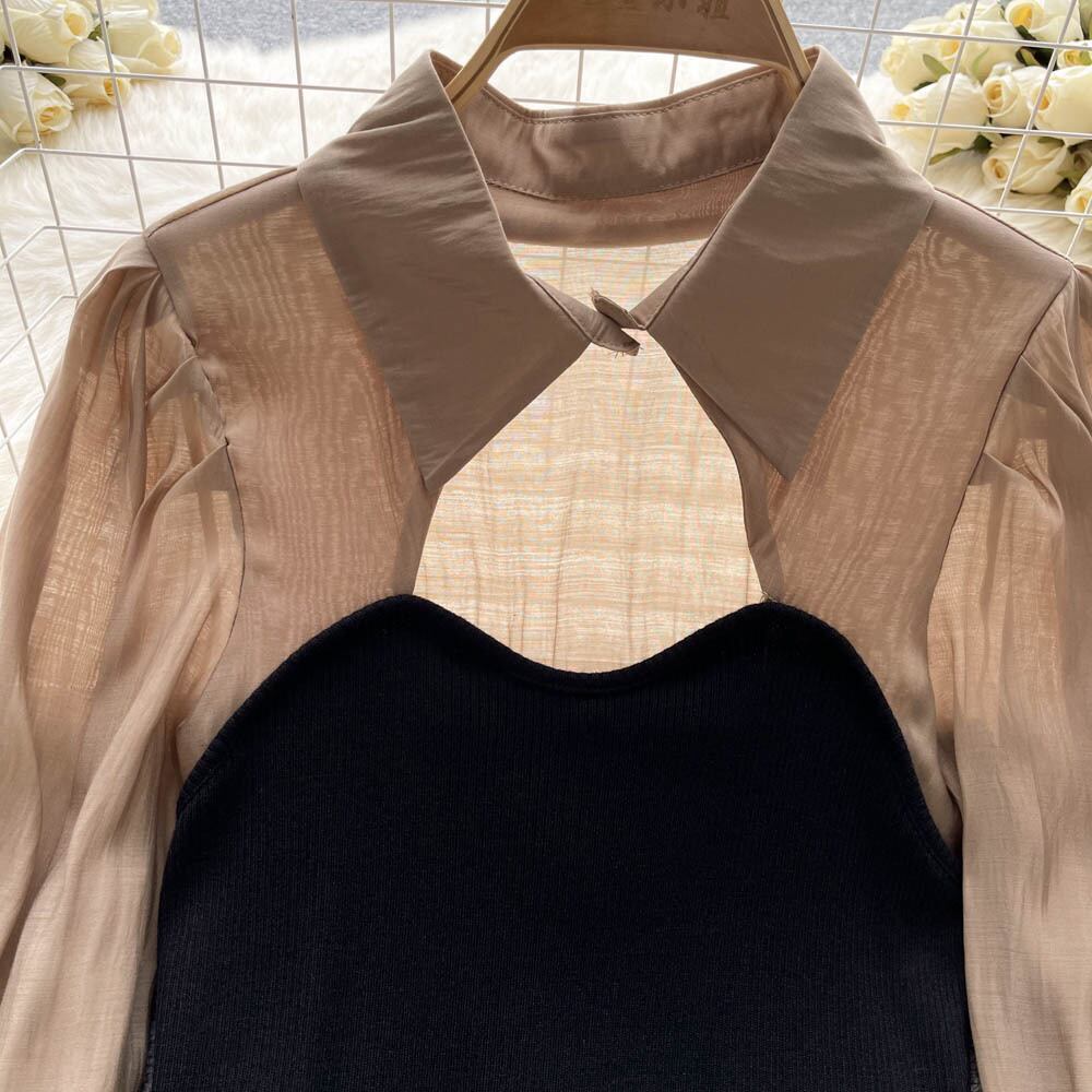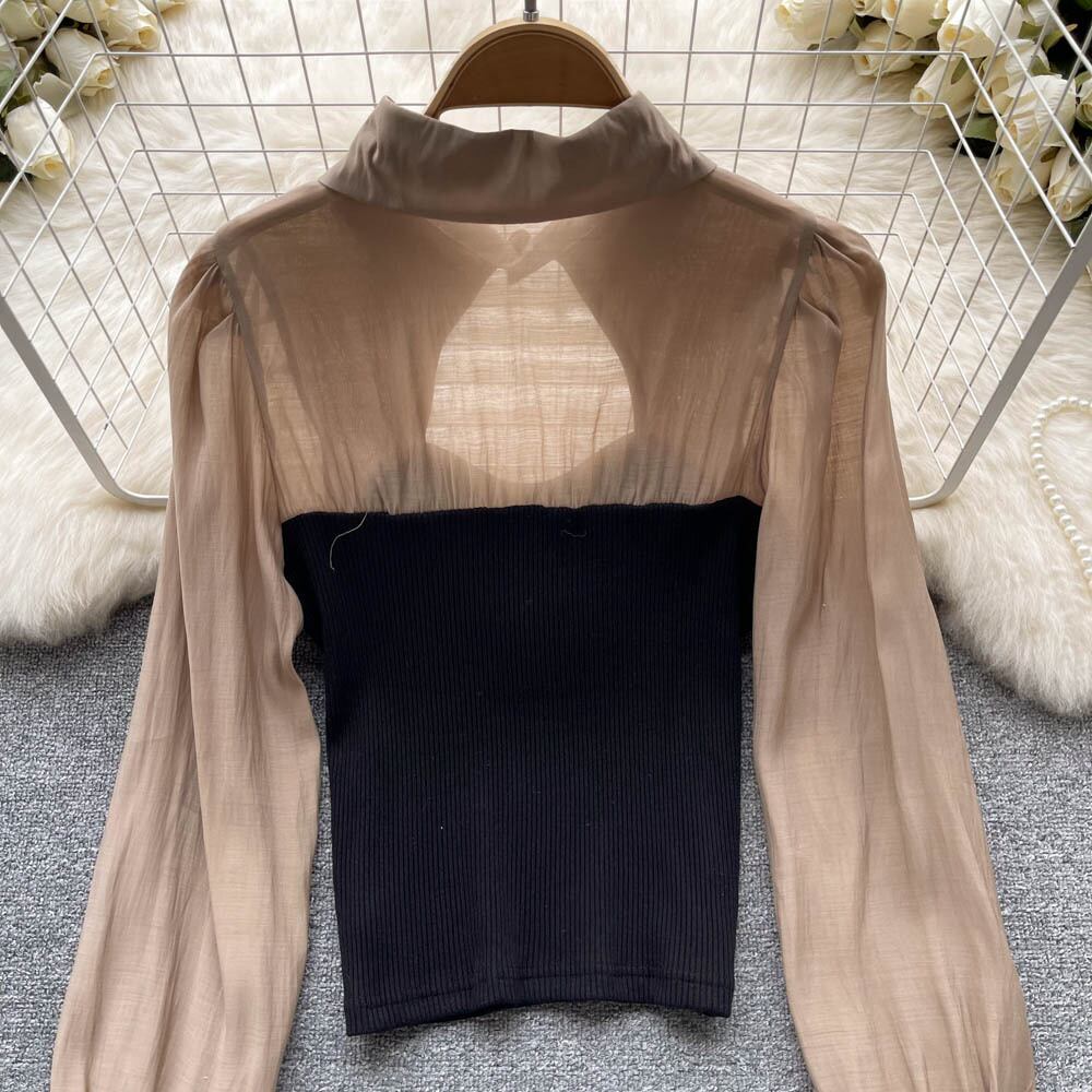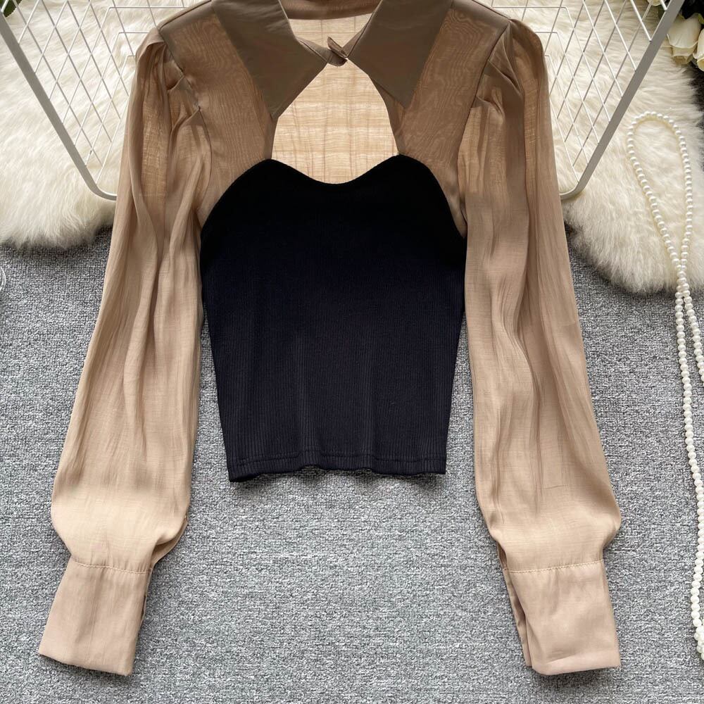 scheming design sense small hit color POLO collar long-sleeved shirt top autumn women's slim short shirt beautiful small shirt ショート ロング オータム 秋物 スリム lyxaj89892176452