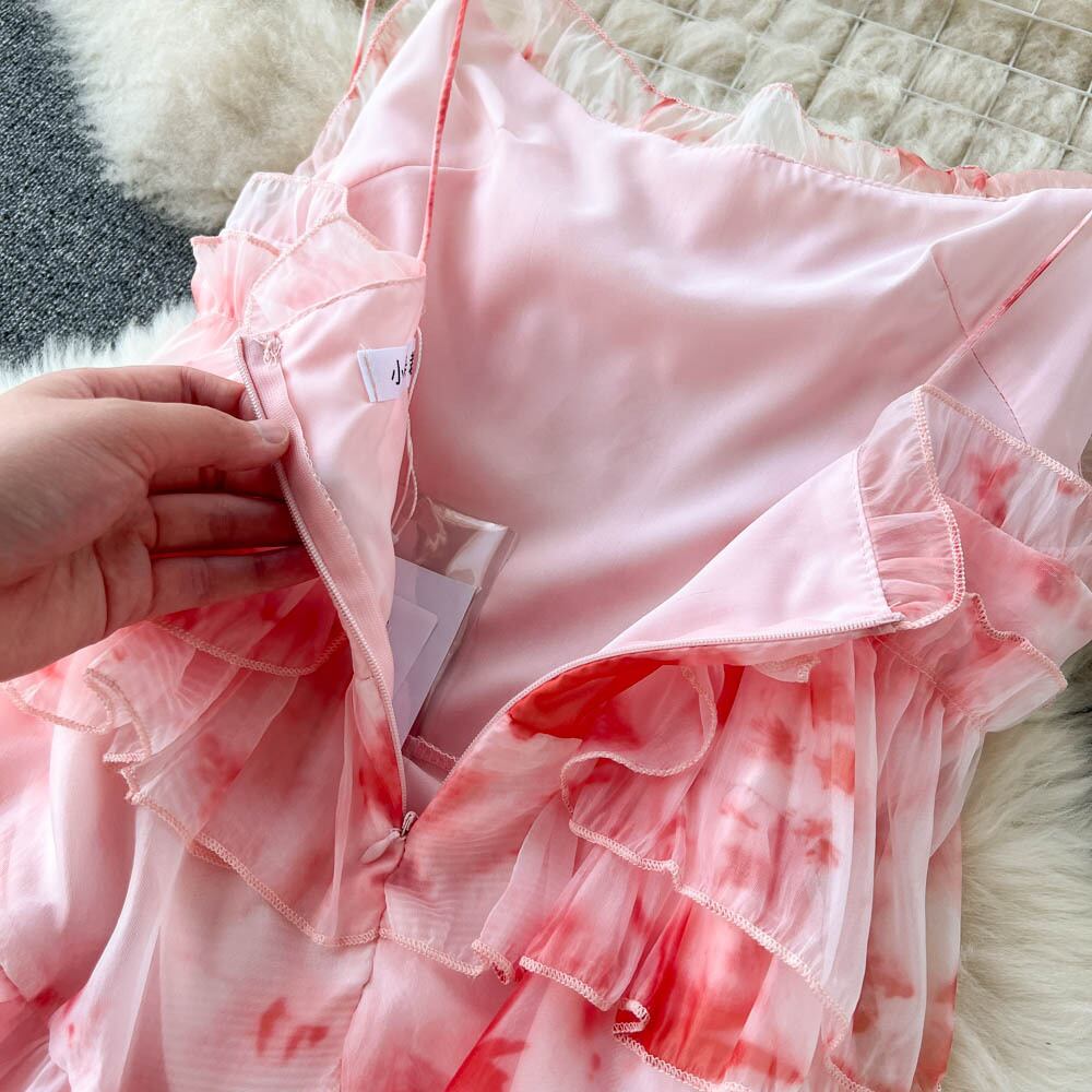 レトロなティー ブレーク花柄スカート女性の小さなフレンチ サスペンダー スカート純粋な欲望にスリムでスリムなフリルの妖精のスカート ピュア lyxaj765044356