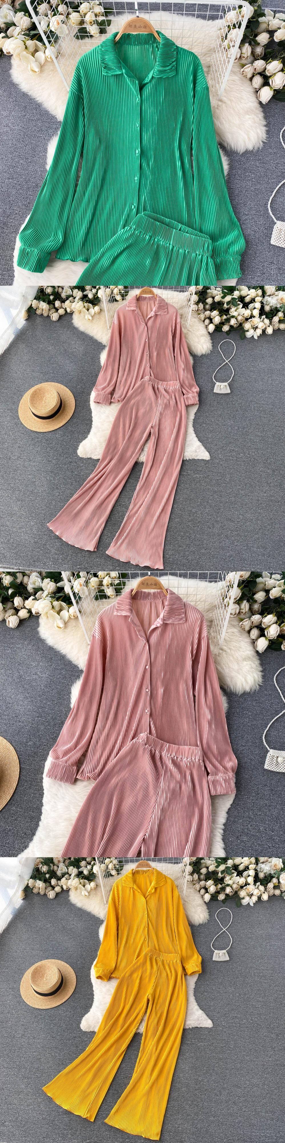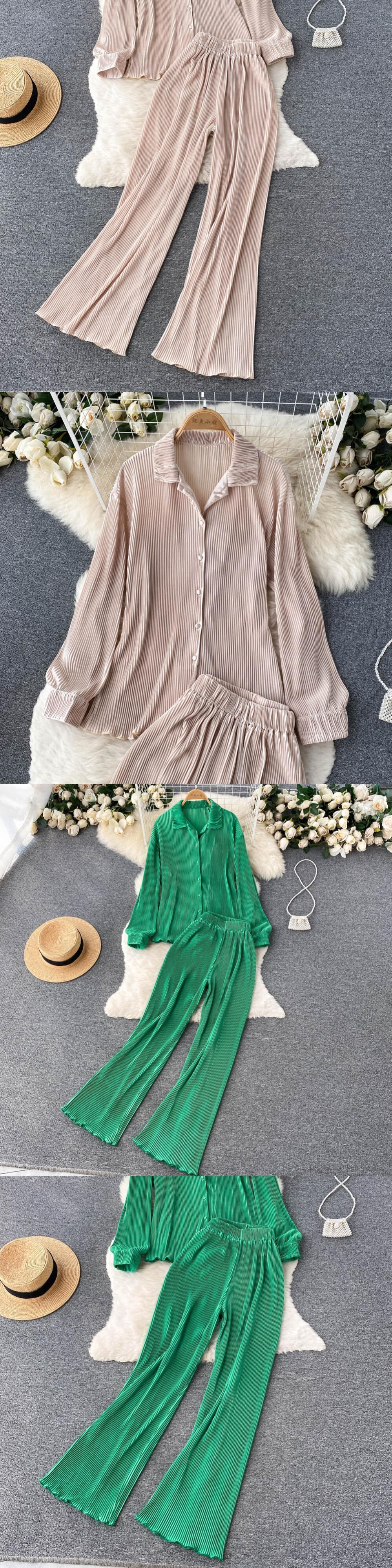 気質レディースツーピーススーツ女性の夏のスタイルファッショナブルでファッショナブルな長袖シャツトップスハイウエストドレープカジュアルパンツ ハイウェスト ロング サマー 夏物 lyxaj80240388437