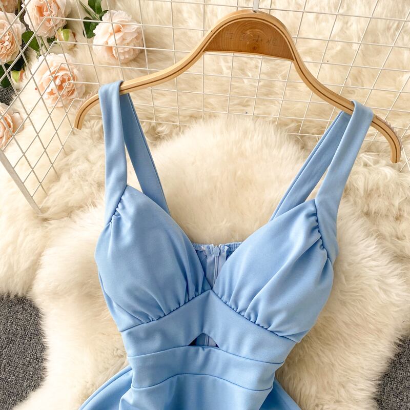 2022 夏新セレブナイトクラブスタイルのセクシーな中空ノースリーブベストサスペンダースカートビッグスイングウエストドレストレンディ サマー 夏物 lyxaj5432759353