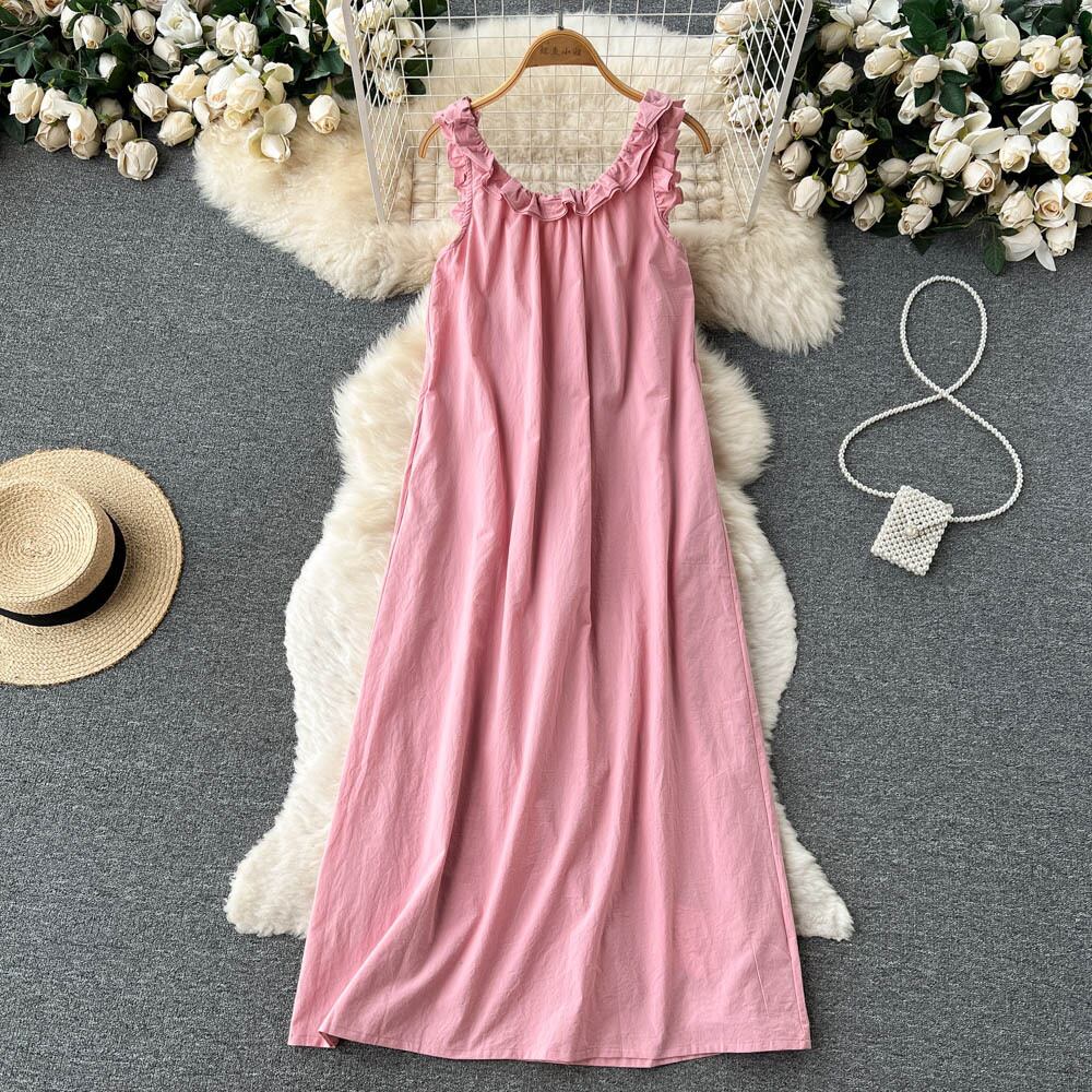 フレンチスイートシーサイドバケーションノースリーブタンクトップドレスサマーレディーススモールレイジーウィンドルーズロングスカート 大人ガーリー スウィート キュート カジュアル 夏物 lyxaj16232150774