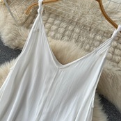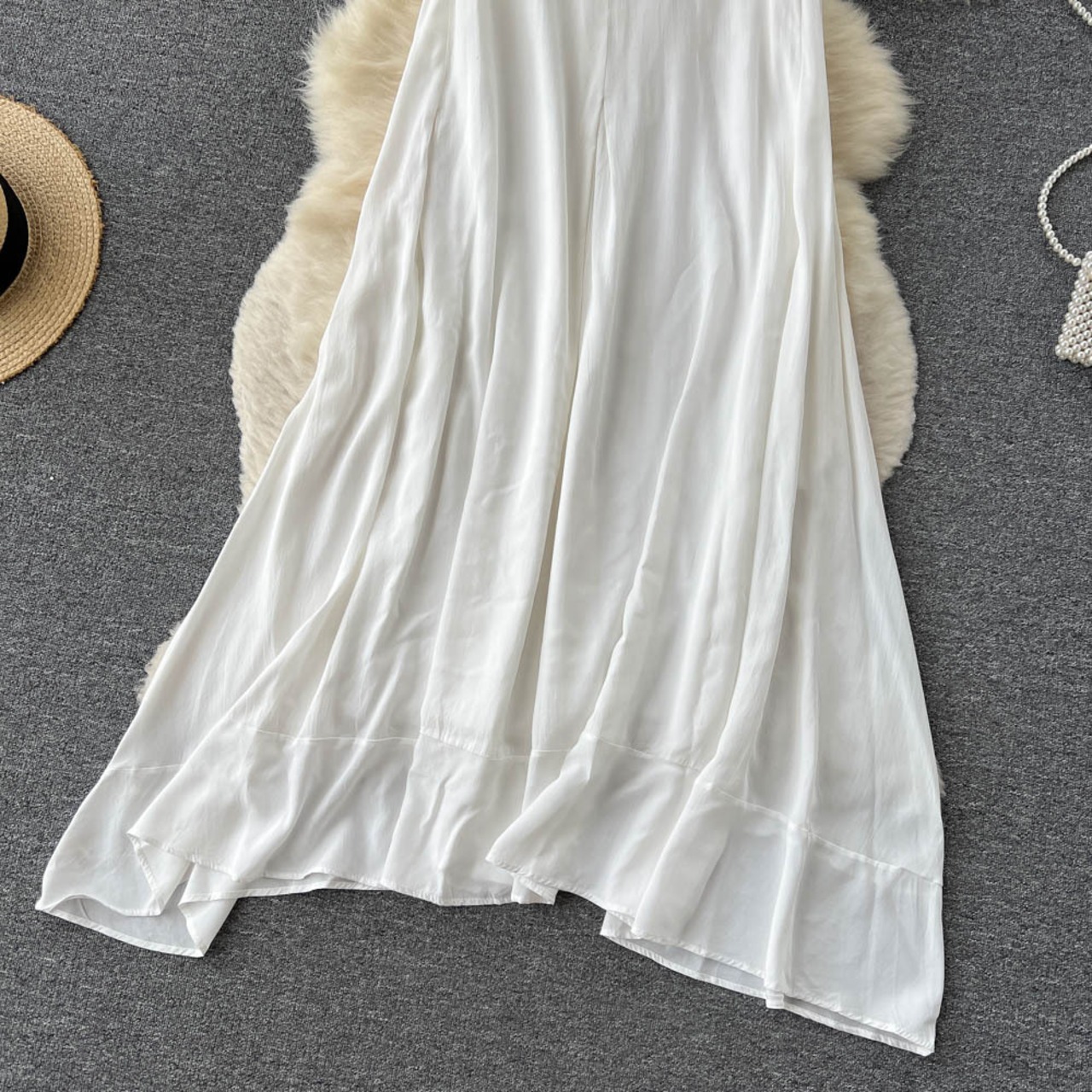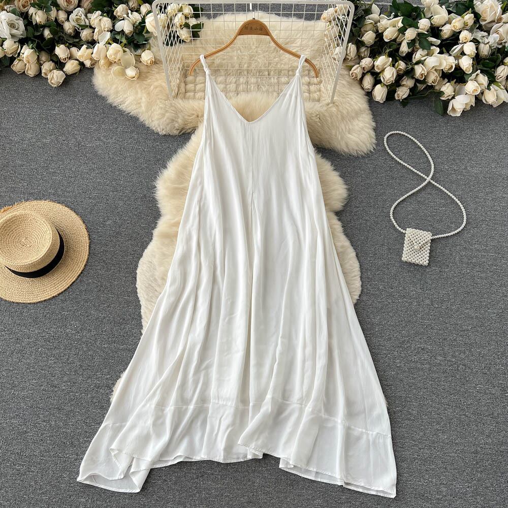 French white suspender dress women's summer new seaside holiday style loose drape elegant beach skirt tide ホワイト エレガント サマー 夏物 ビーチ スカート lyxaj44376175180