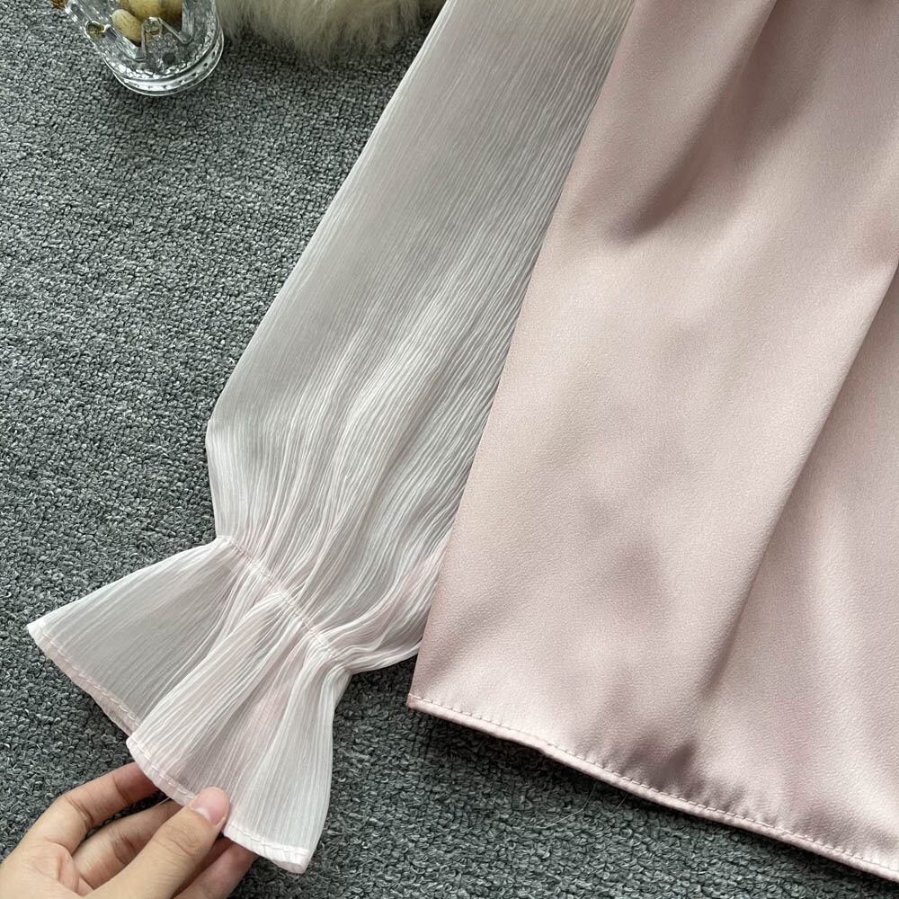 French sweet design sense niche one-shoulder shirt top autumn female bell-sleeved beautiful small shirt short shirt ショート 大人ガーリー スウィート キュート カジュアル オータム 秋物 lyxaj63011513272