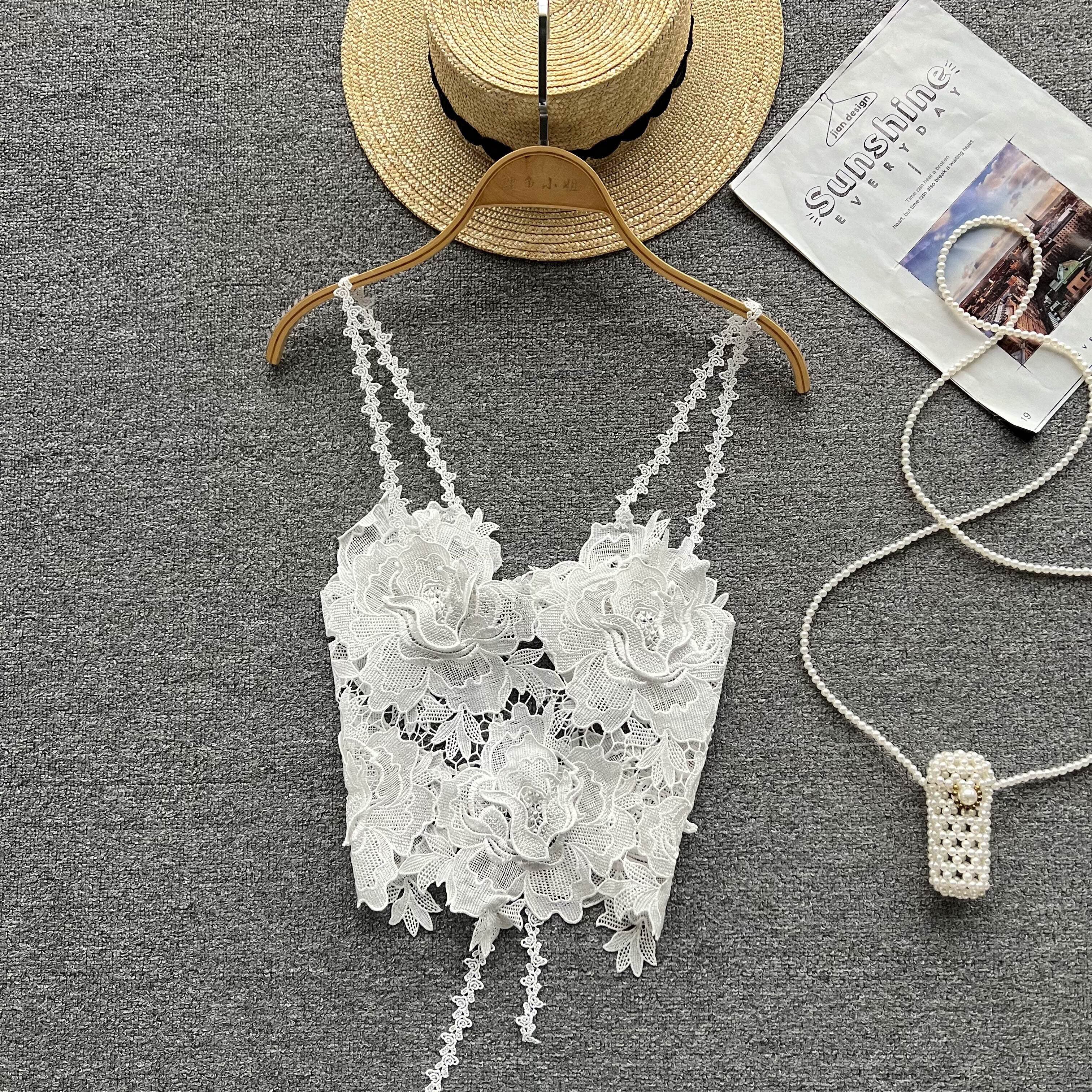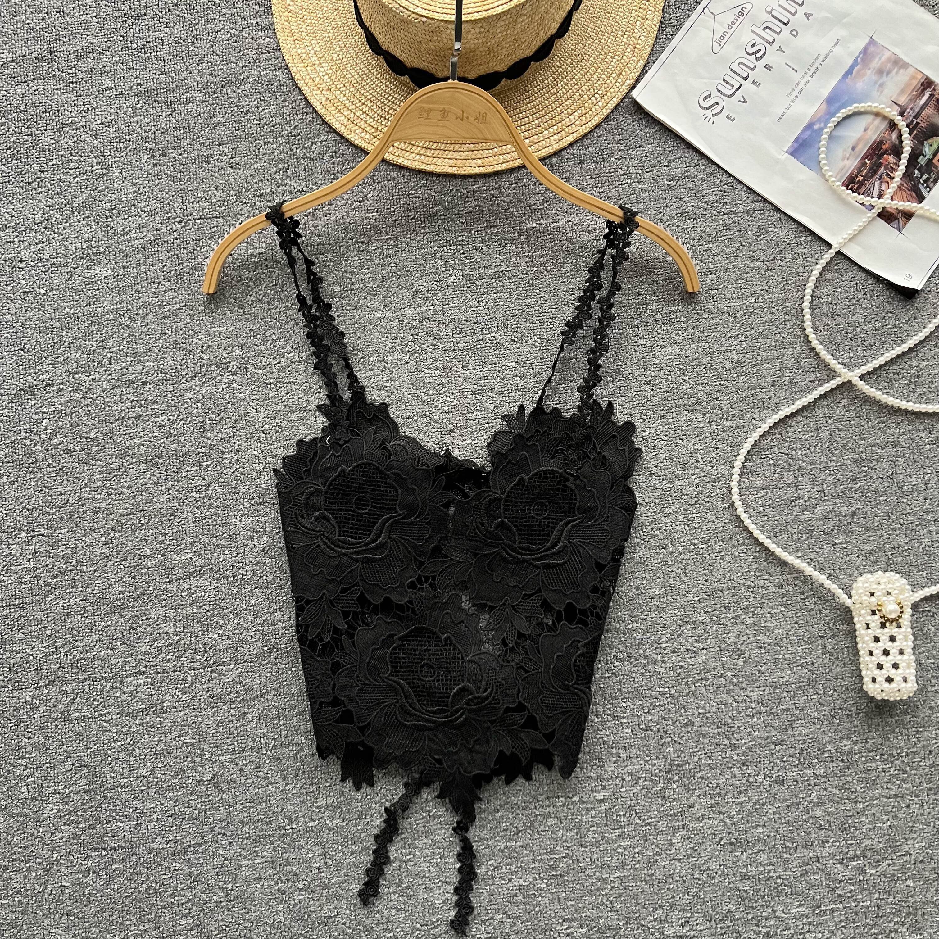 夏キャミソールレディースインナー2022新デザインセンスニッチレース中空美バックボトムラップ胸ショートスタイル サマー 夏物 lyxaj99203205334