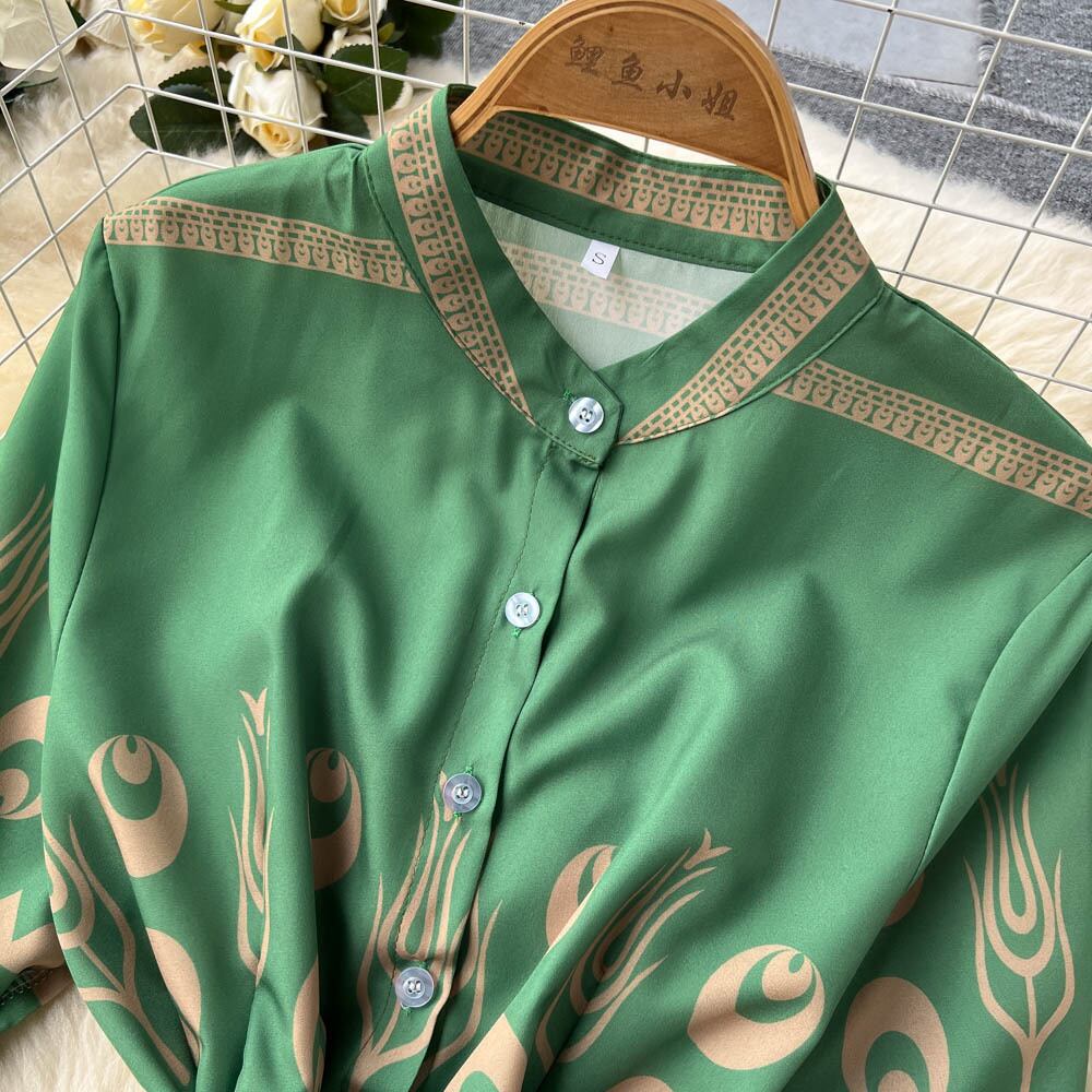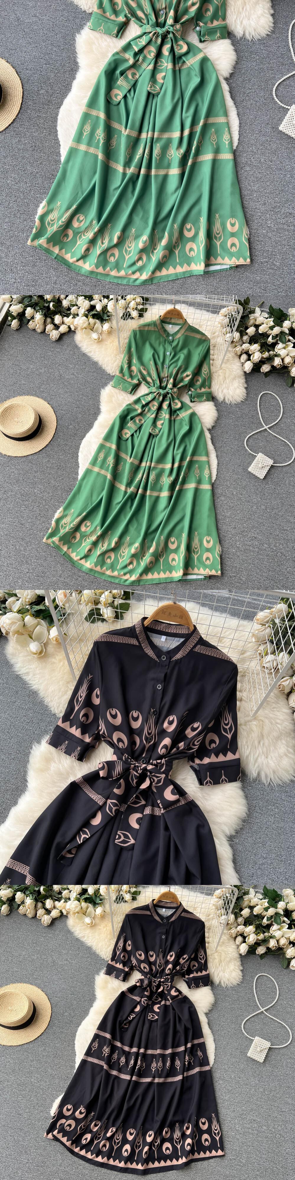 高品質タイウエストプリントミドル丈スカート夏の新しい女性の休日のスタイルの気質 2022 半袖ドレス サマー 夏物 lyxaj78637404898