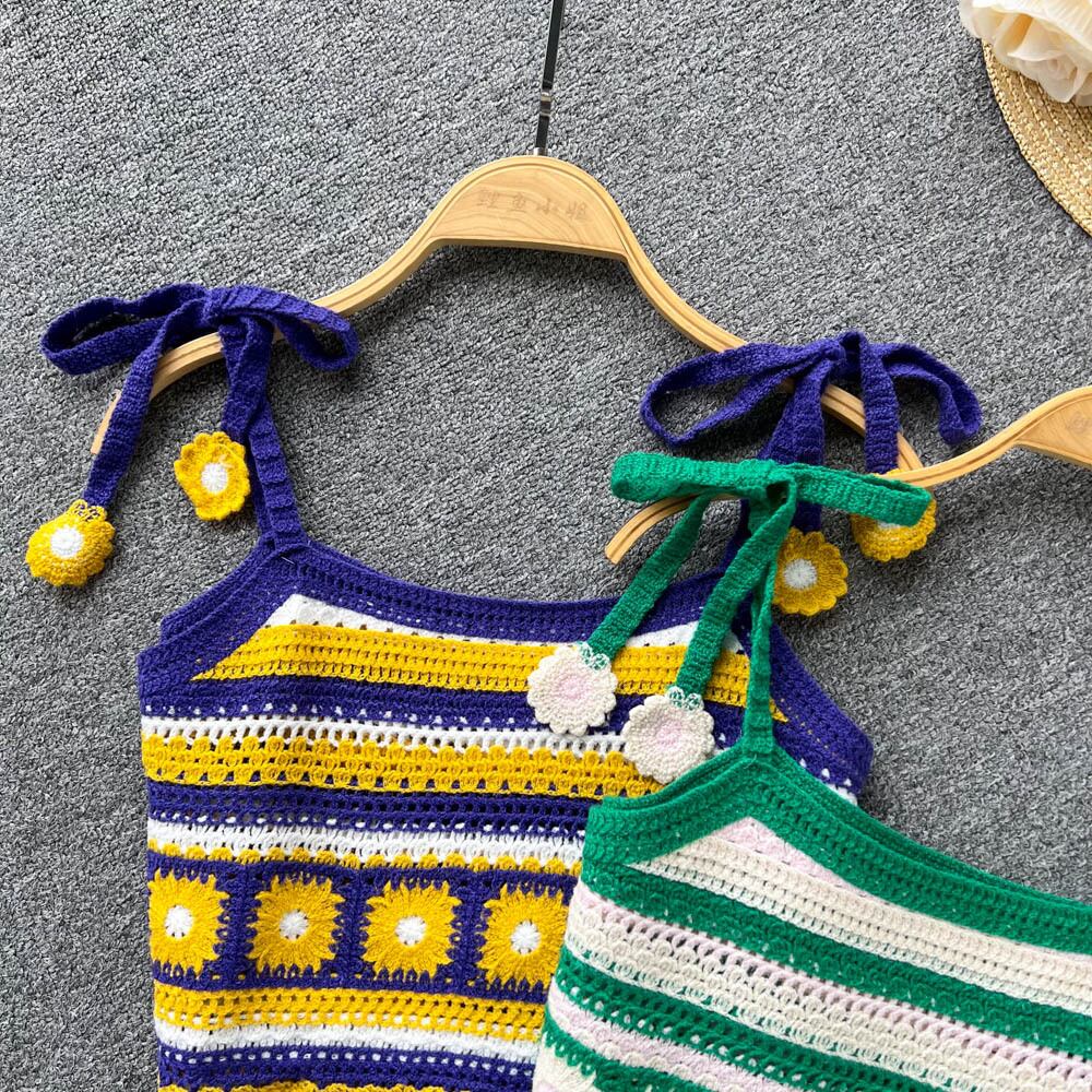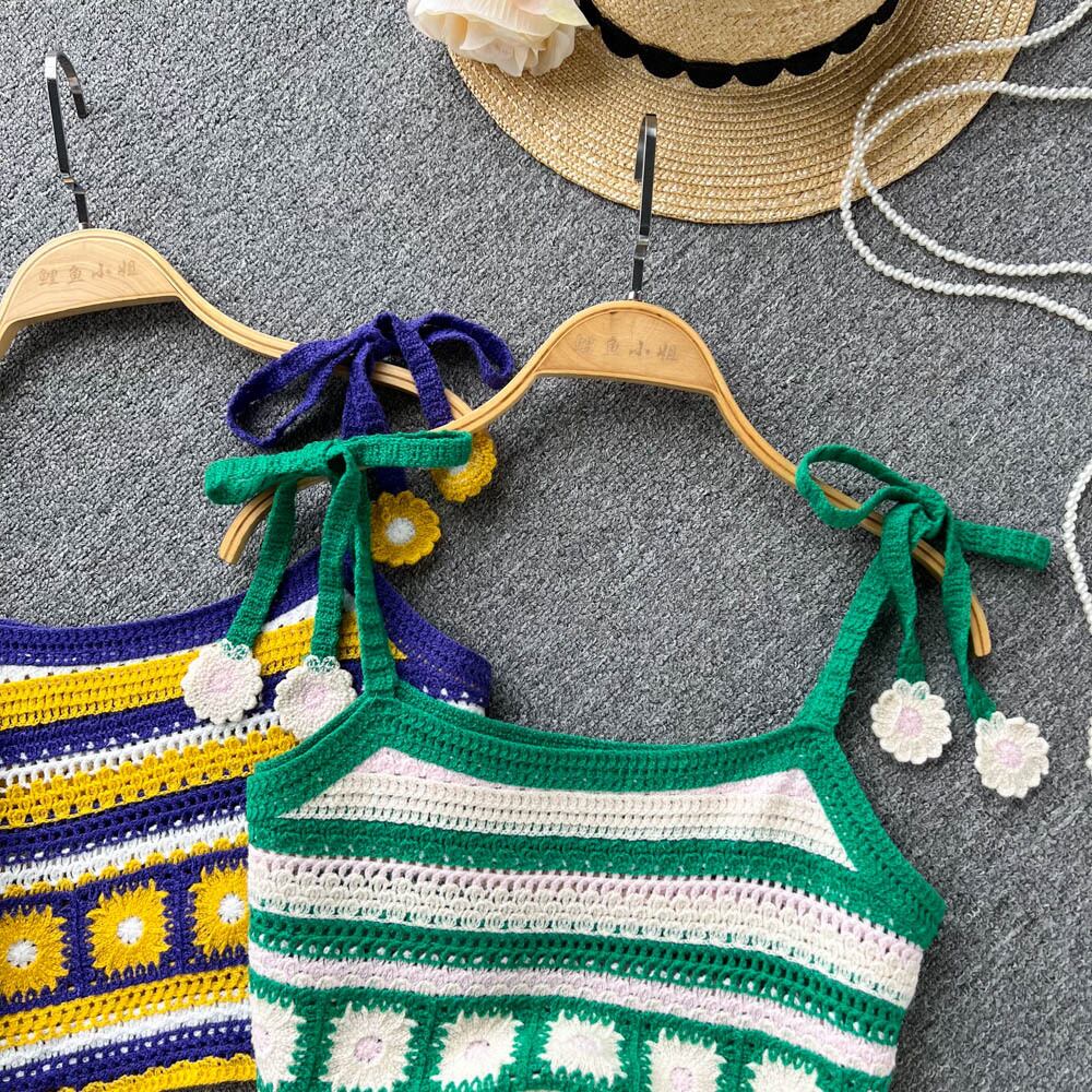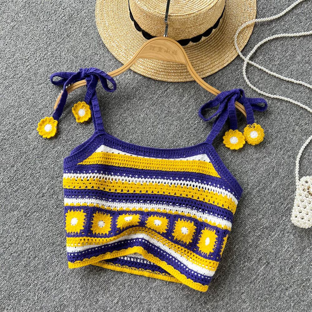 フランスの短いへそニット ベスト女性の夏の新しい韓国語バージョン ハイ ウエスト小さな気質オール マッチ キャミソール ハイウェスト ショート サマー 夏物 lyxaj63890019013