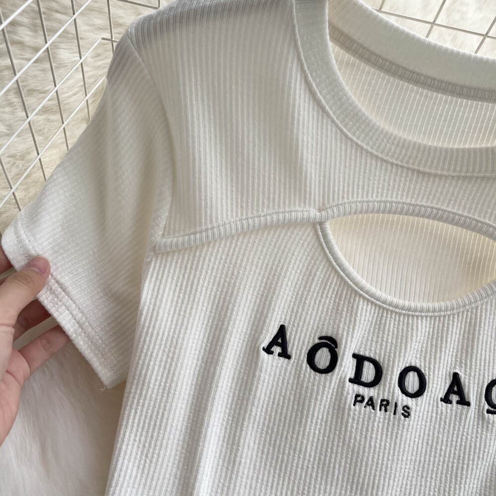 韓国語版デザインセンスニッチ策略中空刺繍半袖 tシャツ女性の 2022 夏新スリムショート tシャツ サマー 夏物 lyxaj76607370996
