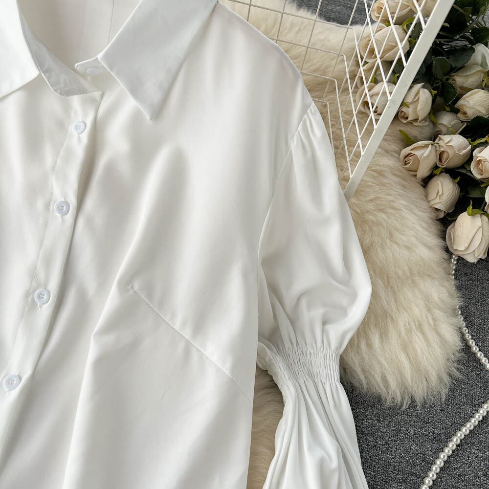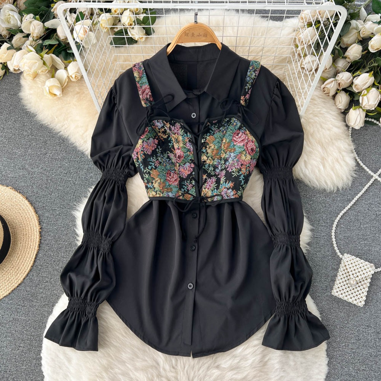 小さな気質バブル スリーブ ホワイト シャツ ドレス秋の女性の花柄キャミソール ツーピース スーツ オータム 秋物 lyxaj49075837634