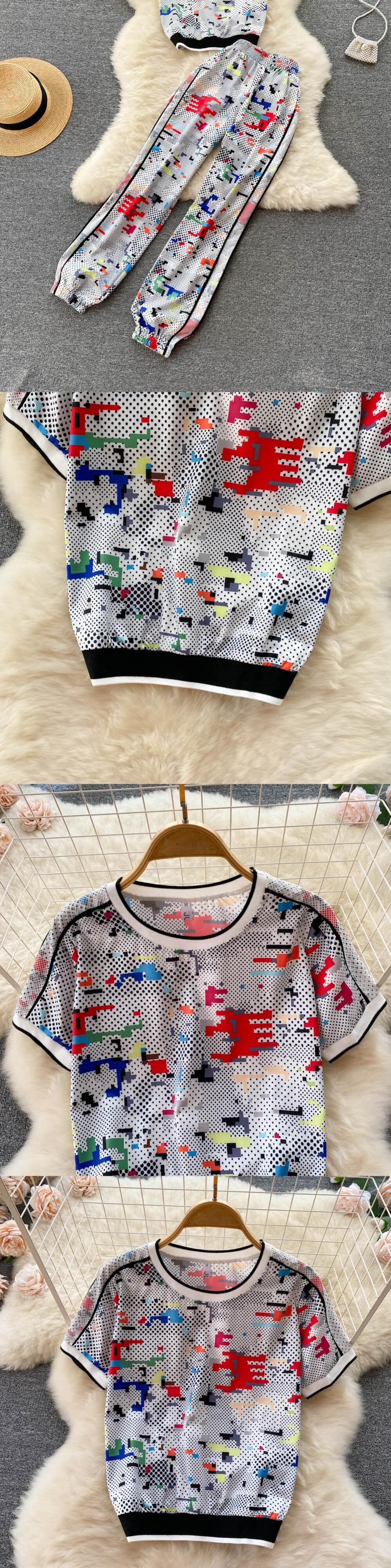 香港スタイルのスポーツスーツの女性の2022年夏の新しいラウンドネック半袖Tシャツ+ハイウエストレギンスカジュアルパンツ2点セット サマー 夏物 Oネック lyxaj78307934162