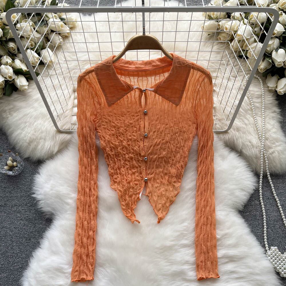 sense niche all-match long-sleeved t-shirt women's autumn pure desire style thin POLO collar short t-shirt top ショート ロング オータム 秋物 Tシャツ ピュア lyxaj15069586147