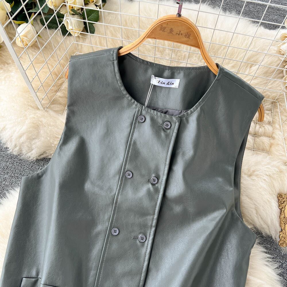 Beautiful and fashionable all-match PU leather vest jacket women's autumn new high-end fried street sleeveless vest jacket ストリート オータム 秋物 レザー ノースリーブ lyxaj98994552198