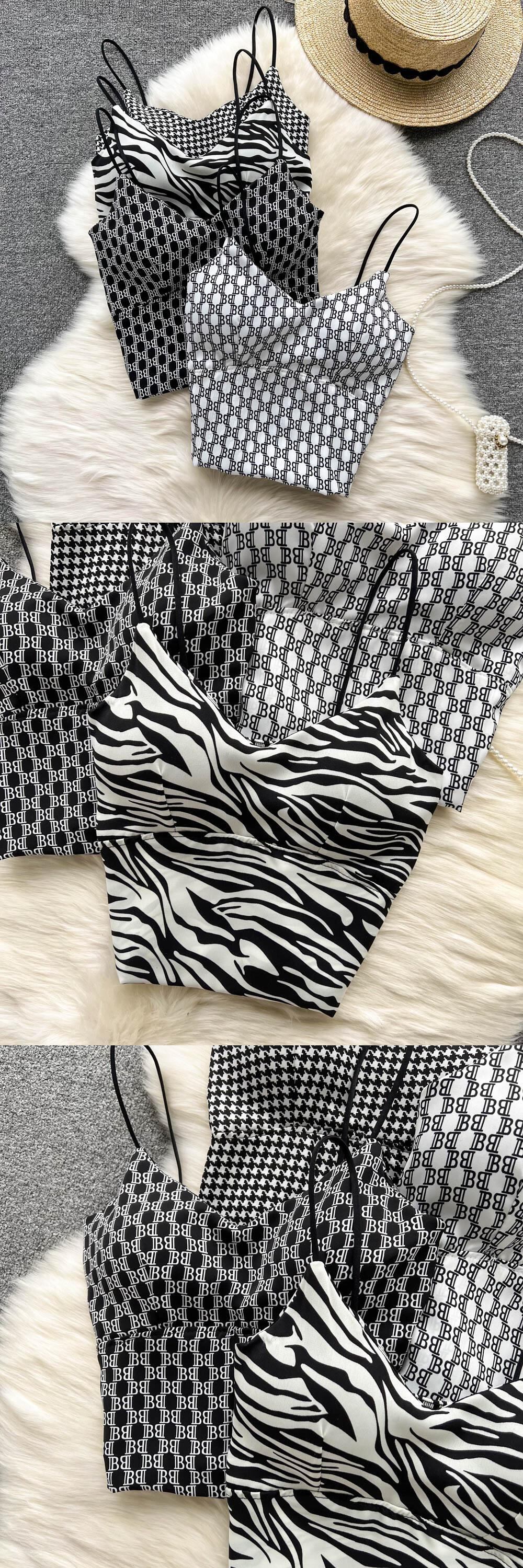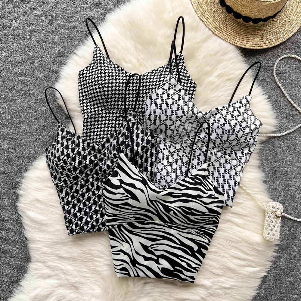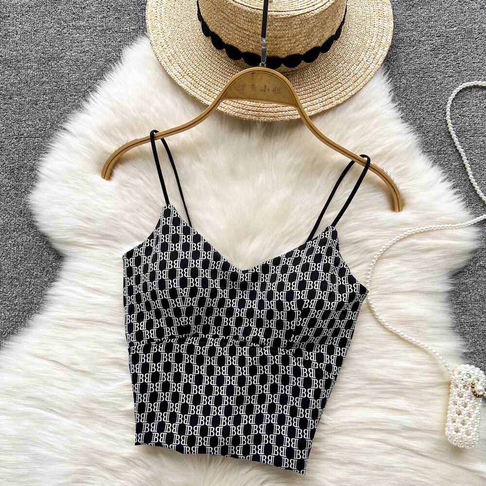 2022 夏新韓国語バージョンレトロ千鳥格子オフショルダートップサスペンダー V ネックスリムショートホットガールベスト サマー 夏物 Vネック lyxaj67427114675