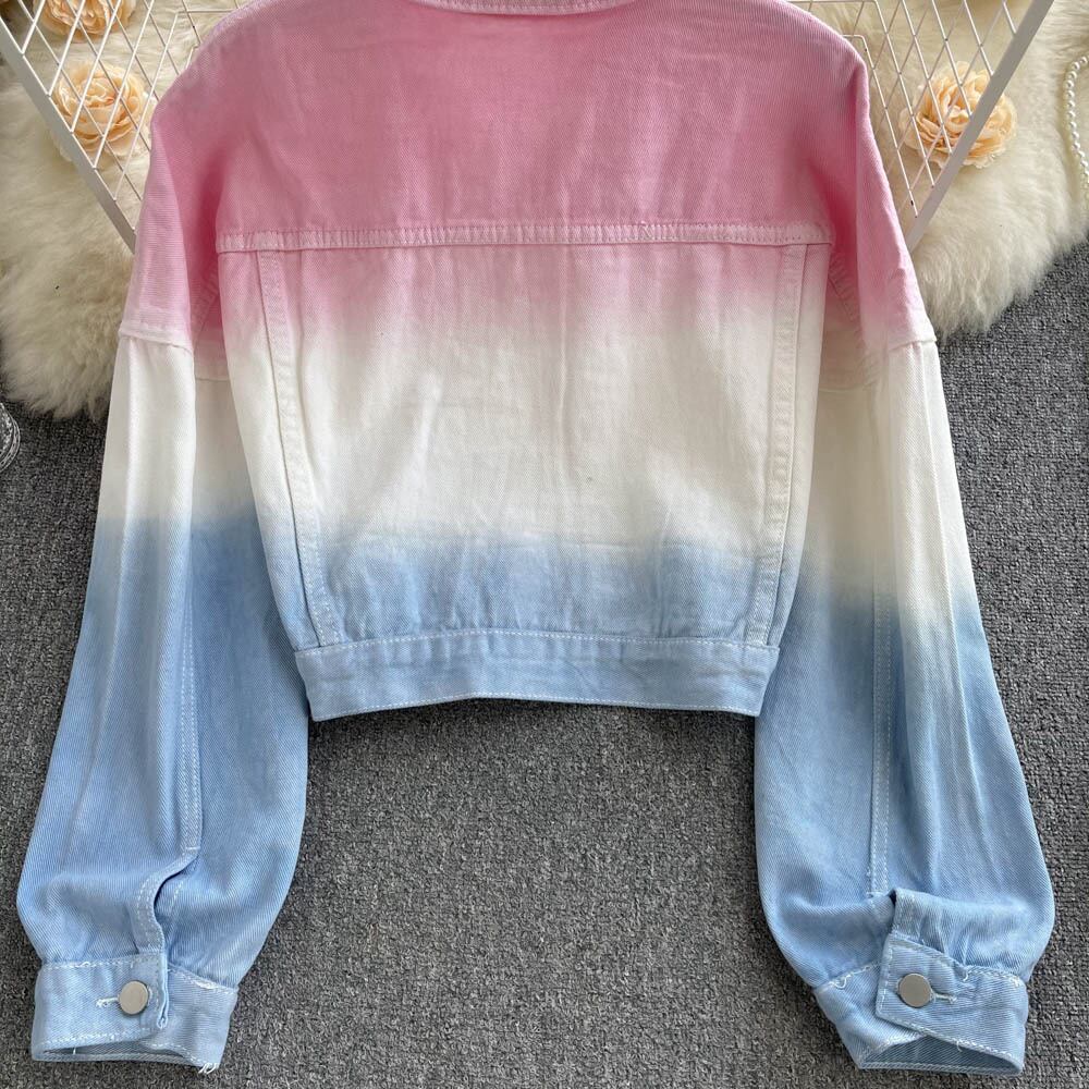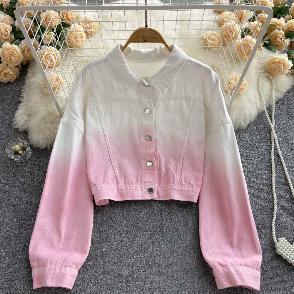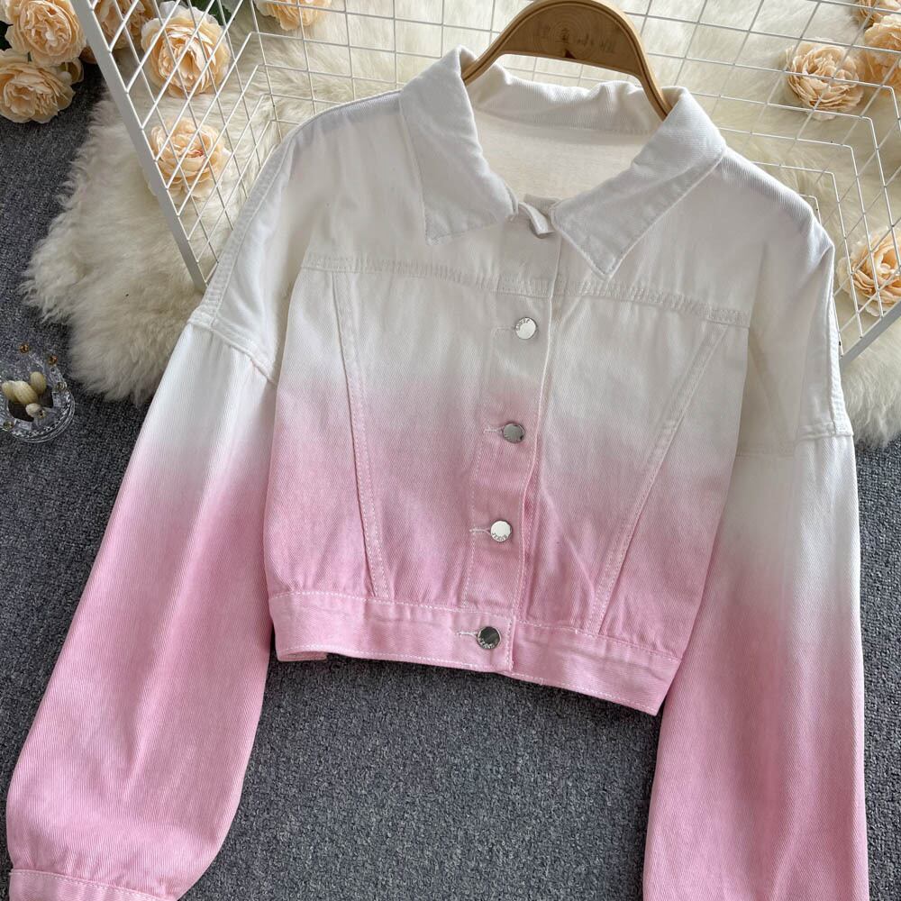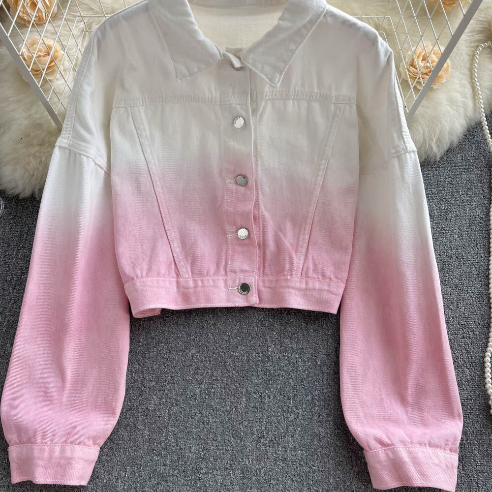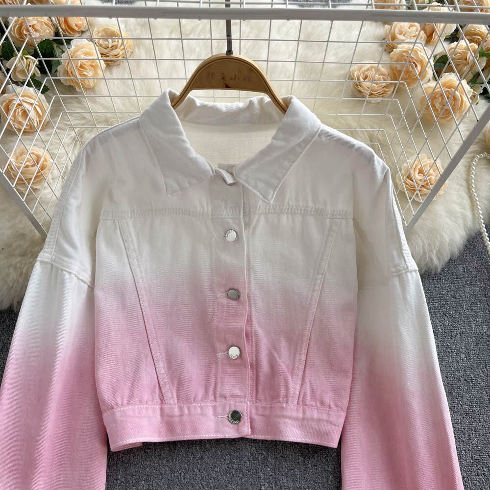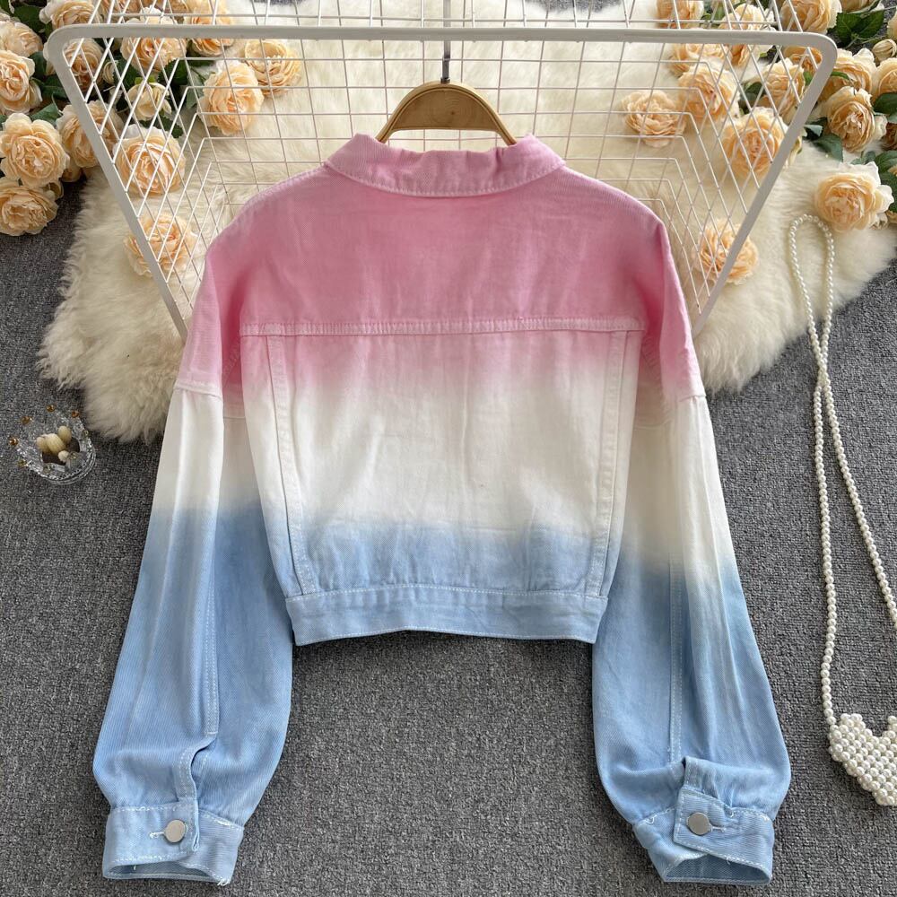 French-style age-reducing beautiful Western-style gradient color loose short denim jacket women's summer thin section all-match long-sleeved top ショート ロング サマー 夏物 lyxaj67522375360