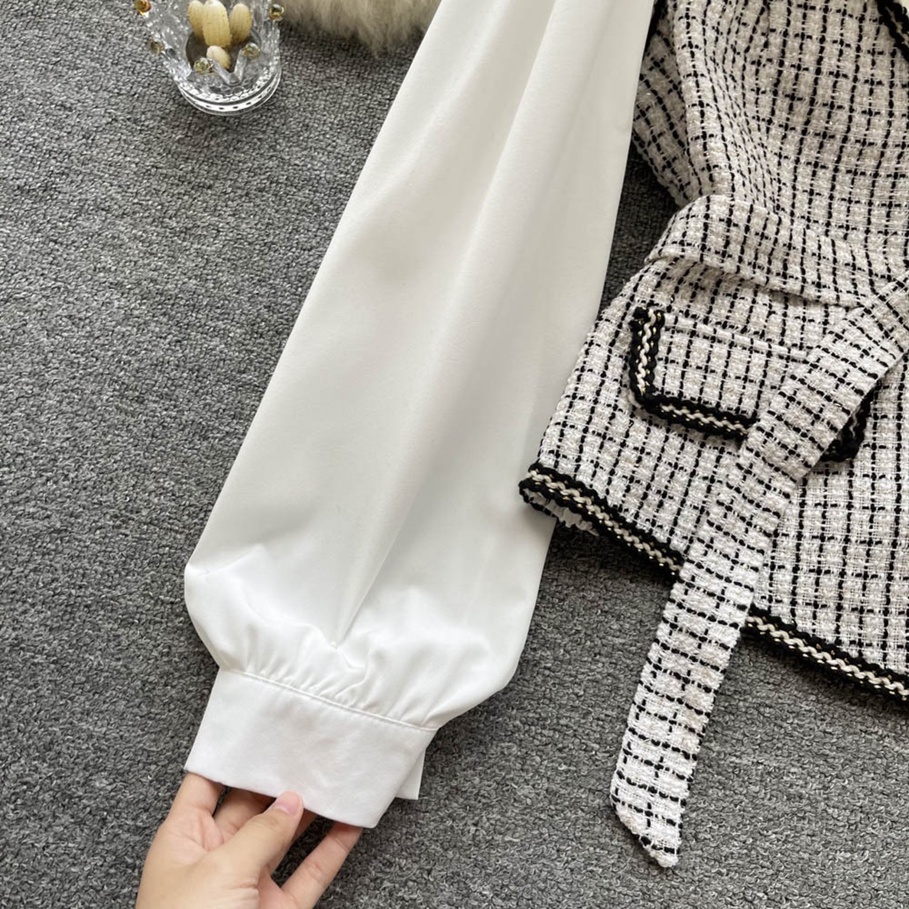 Xiaoxiangfeng千鳥格子ステッチ長袖シャツトップ秋の女性の不規則なシックな美しい小さなシャツウエストシャツ ロング オータム 秋物 lyxaj96996176206