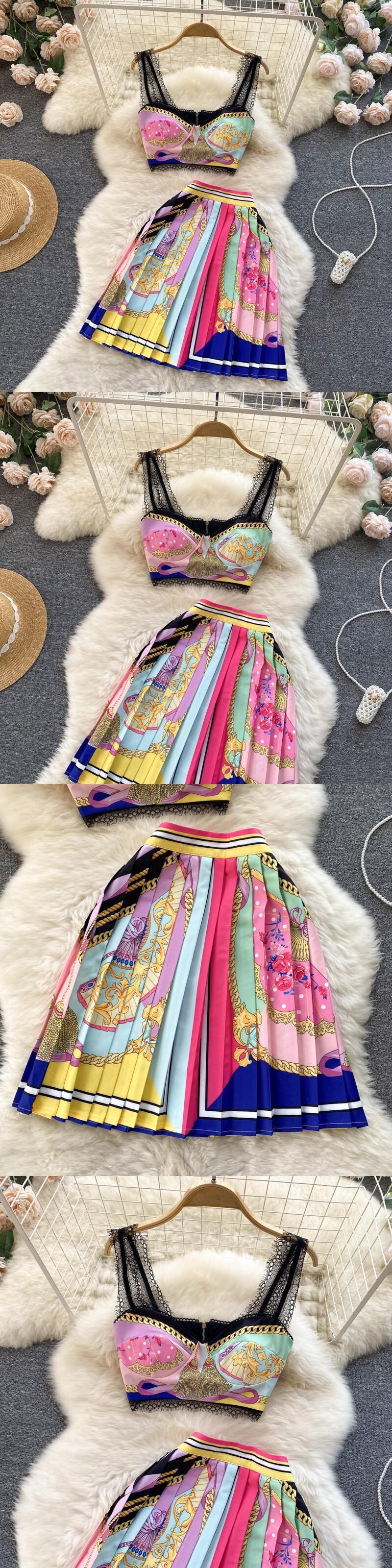ヨーロッパとアメリカのインの女神の気質のスーツ ホット ガール ショート チューブ トップ キャミソール ハイ ウエスト プリーツ スカート 2 点セット ハイウェスト ヨーロピアン lyxaj78740567849