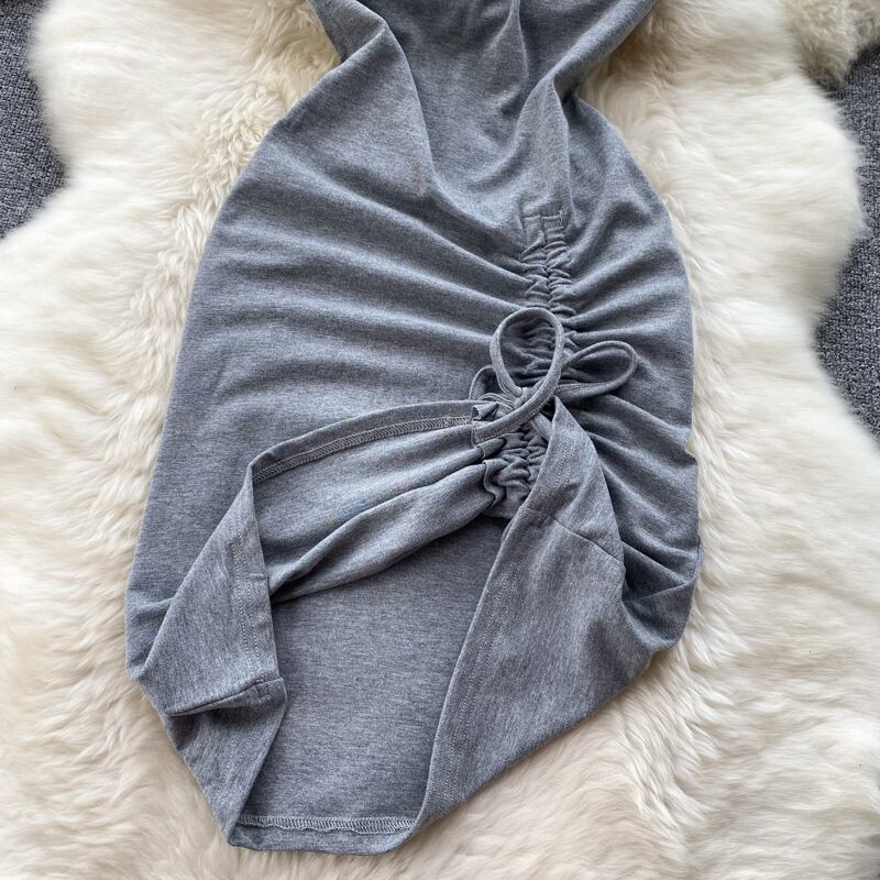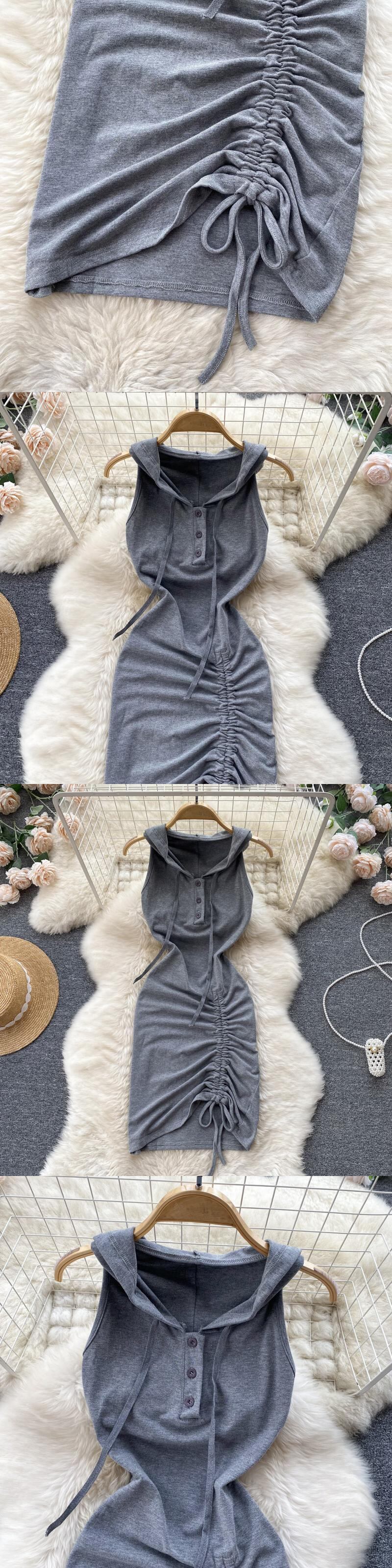 シックなデザインのフード付きノースリーブのセクシーなバックレス ドレス女性の夏の新しいプリーツ巾着スリム ヒップ スカート サマー 夏物 スリムヒップ lyxaj25670919703