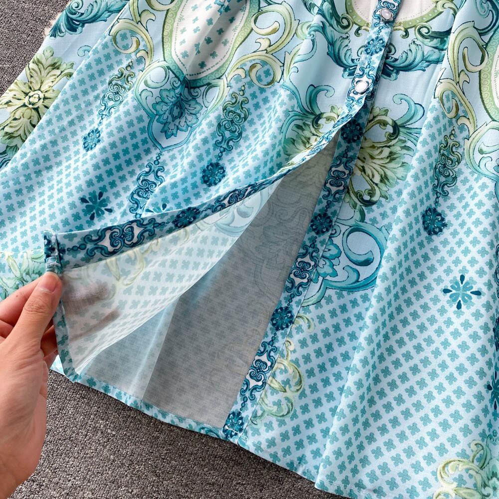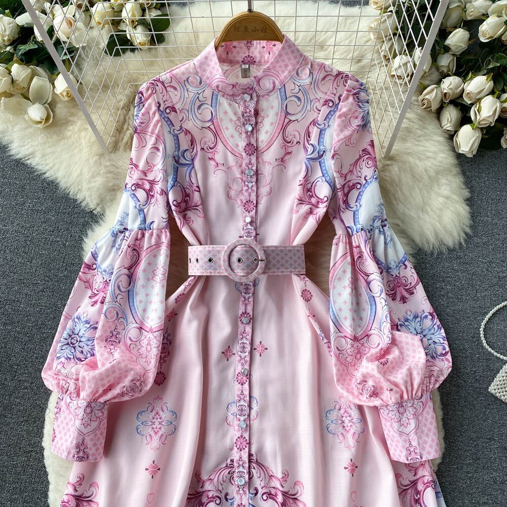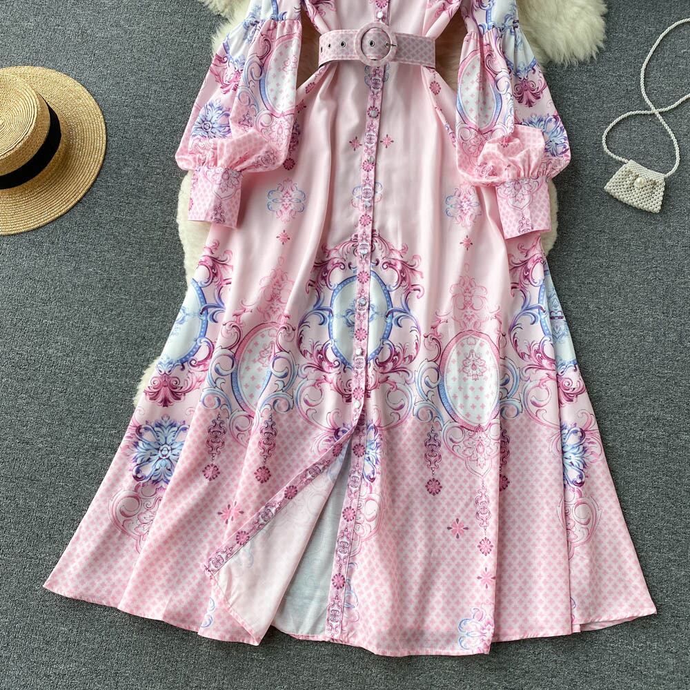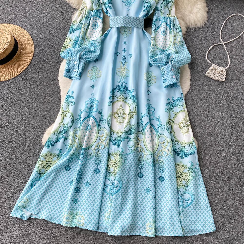 エスニック風ウエストスリム気質長袖ドレス夏の女性のフレンチシックな美しいプリントロングスカートトレンド サマー 夏物 lyxaj59458776449