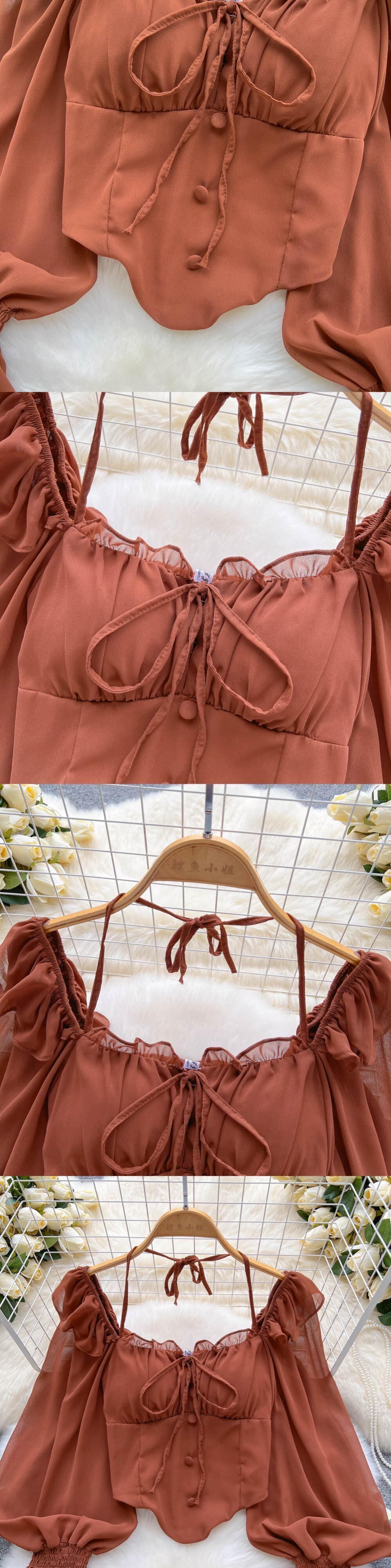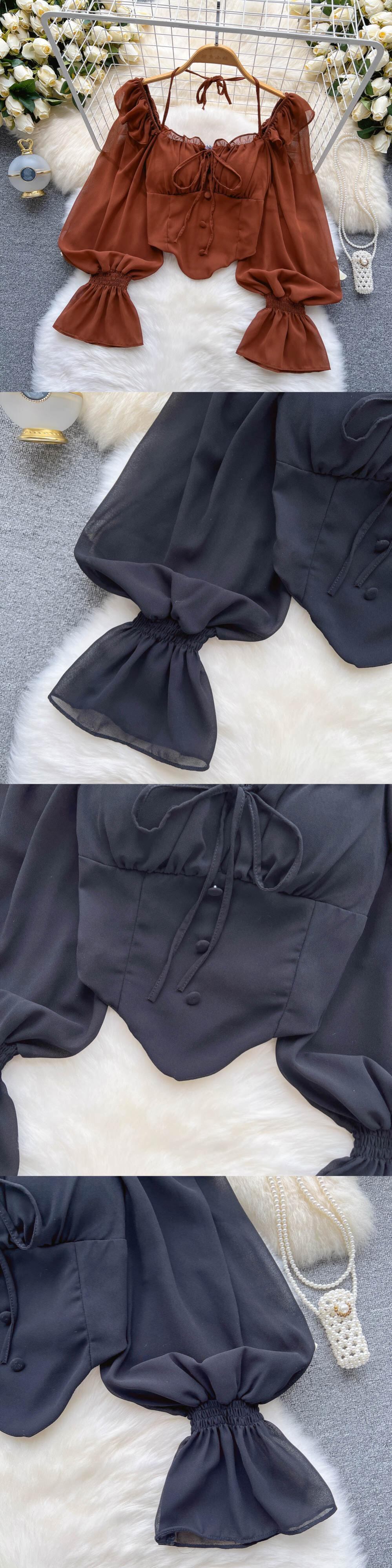 フレンチガール パフスリーブ トップス ファッション スクエアカラー デザイン 外国風 ショート スリム シフォン シャツ 女性 小さい スクウェア lyxaj30865908047