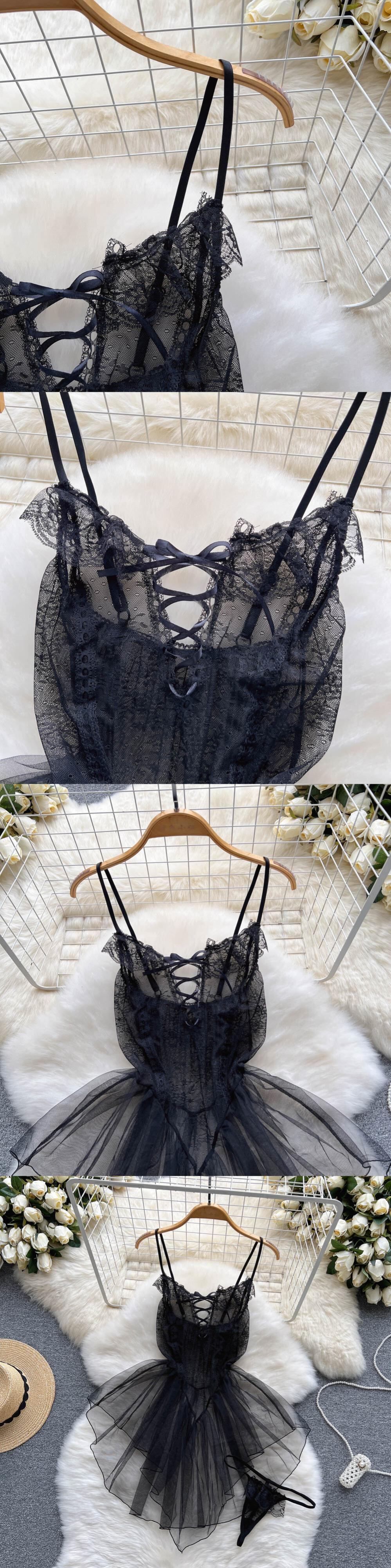 ピュア ラスト ホット ガール メッシュ バックレス 気質 サスペンダー ドレス サマー レディース ミッドウエスト ブリーフ ツーピース セット 夏物 lyxaj54163978699